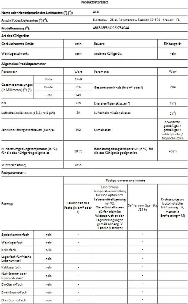 AEG – ABE818F6NC – Einbau-Gefrierschrank – NoFrost – Festtür-Technik