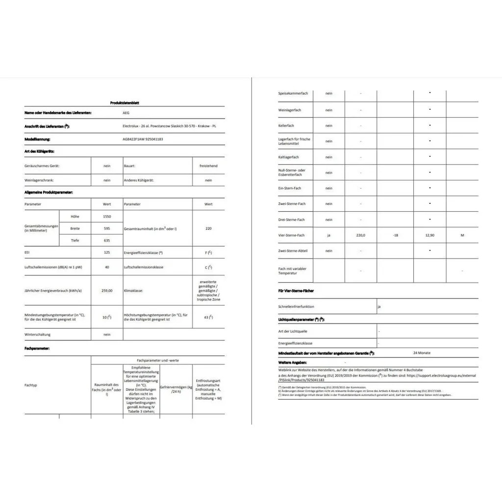 AEG AGB422F1AW Gefrierschrank 220 Liter 4 Gefrierschubladen Davon 2 Maxi