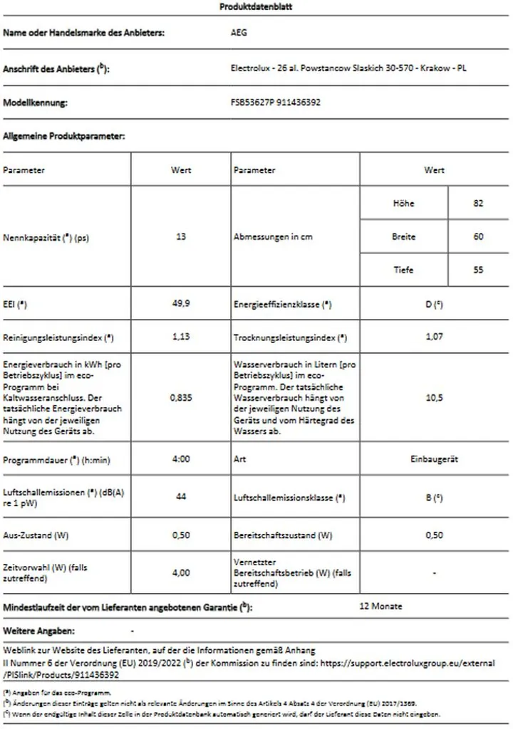 AEG – FSB53627P – Vollintegrierbarer Geschirrspüler – 60 Cm