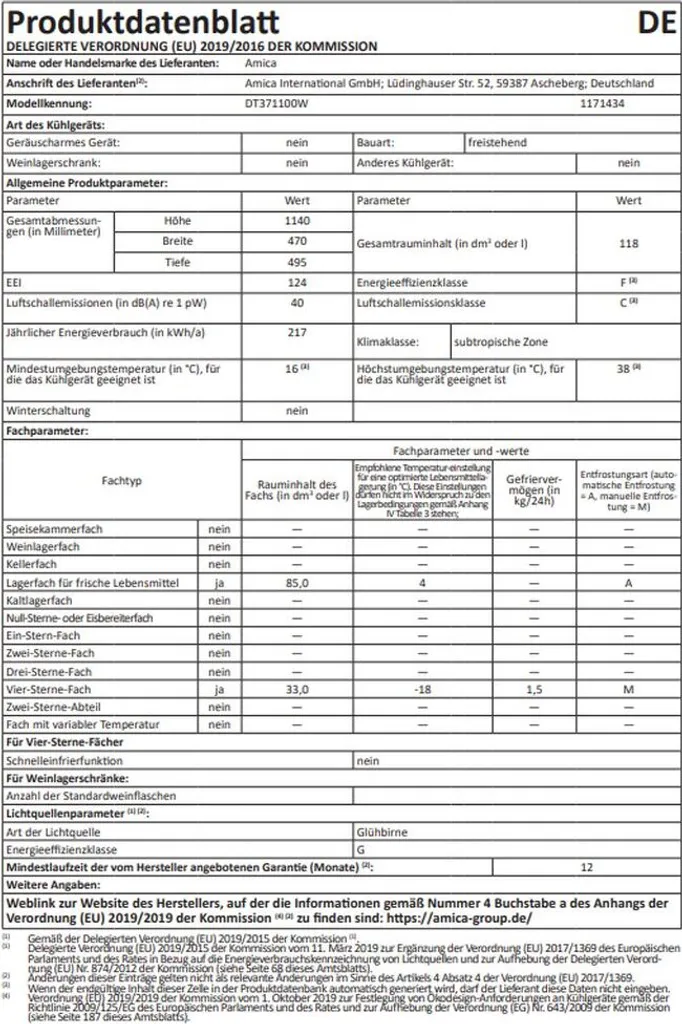 | Zusätzliche Varianten | Amica – DT 371 100 W – Kühl-Gefrierkombination – Weiß, Amica – KGC 384 110 W – Kühl-Gefrierkombination – Weiß, Amica DT 374 050 W Kühl-Gefrier-Kombination freistehend 204 L FrostControl |