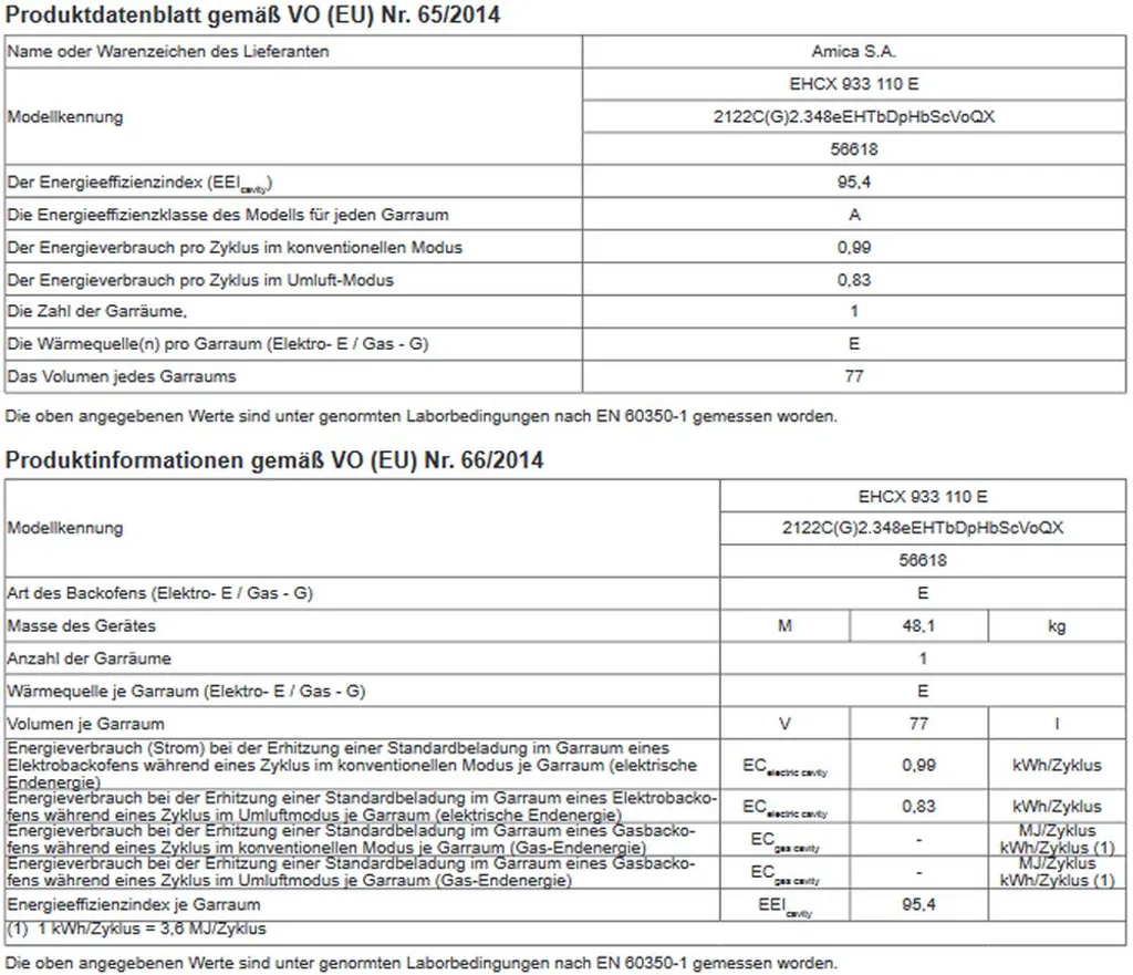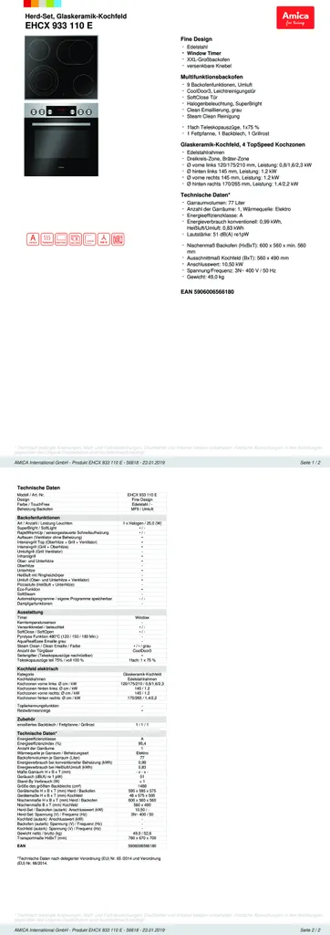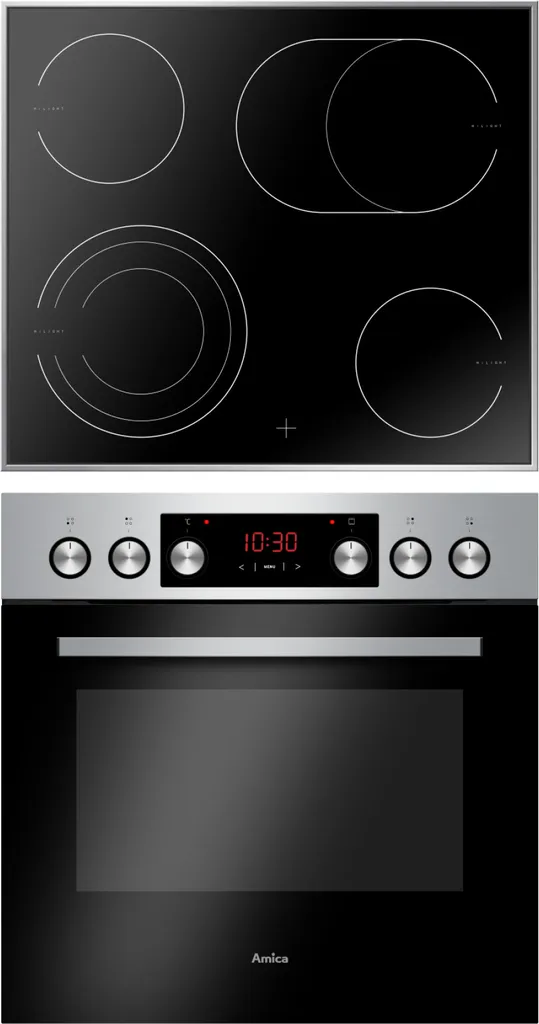 Amica EHCX 933 110 E, Herd-Set, Glaskeramik-Kochfeld, Fine Design, Edelstahl, XXL-Großbackofen, Energieeffizienzklasse A