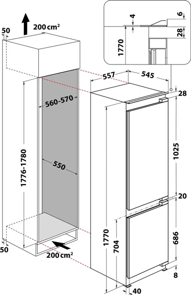 Bauknecht Einbau Kühl-/Gefrierkombination 273L 226kWh 177er Nische KGIL 180F2 P