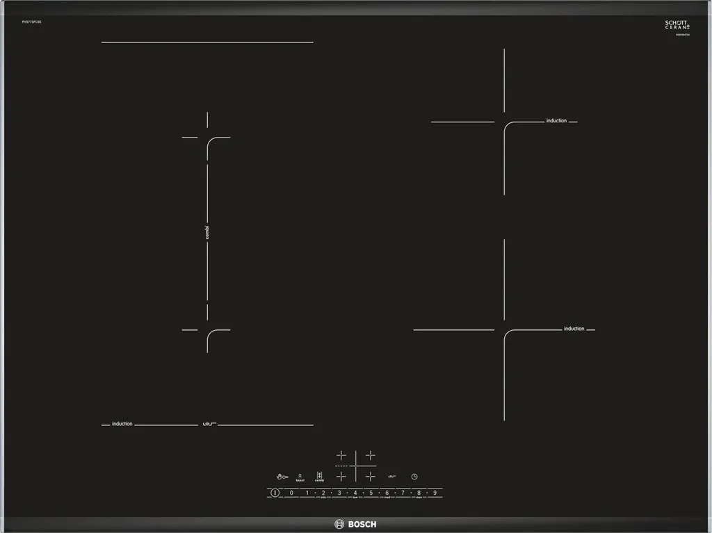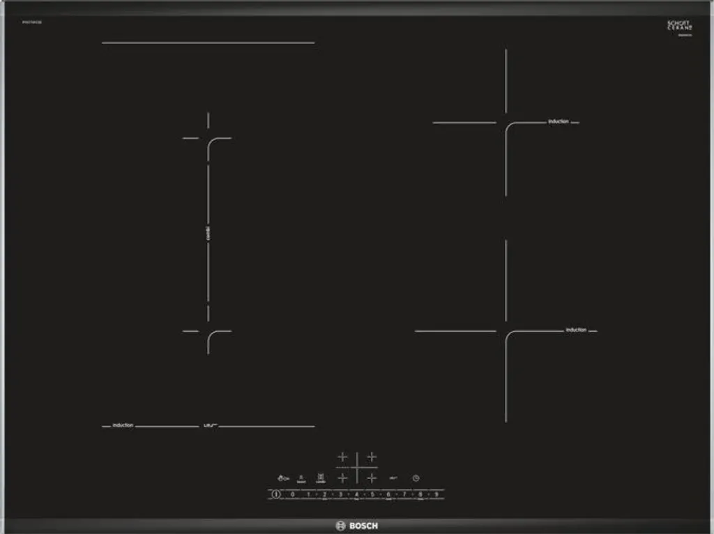 Bosch Serie 6 PVS775FC5E, Schwarz, Integriert, 70 Cm, Zonen-Induktionskochfeld, Glaskeramik, 4 Zone(n)