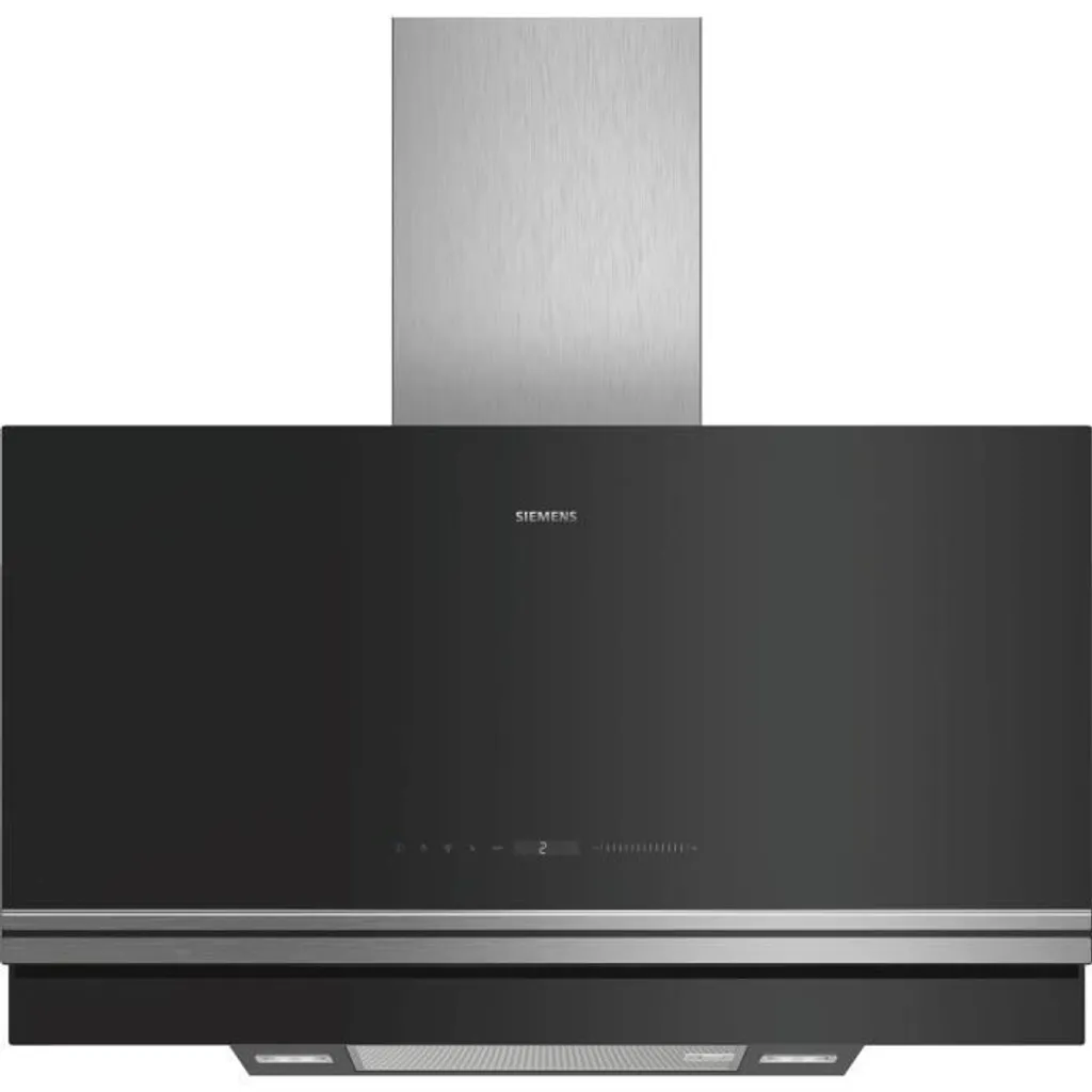 Bosch SIEMENS LC97FVW60 Dekorative Wandabsaug- Und Recyclinghaube – 394 M³/h – 57dB – 5 Geschwindigkeiten – L 90cm – Schwarz Mit Glasfinish