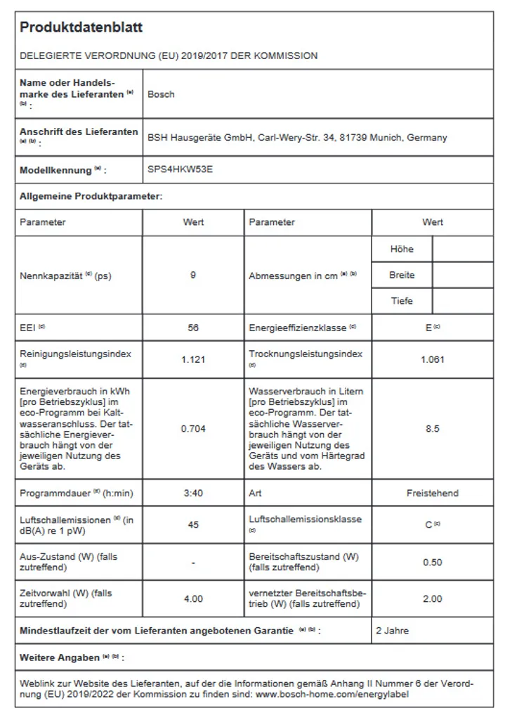Bosch SPS4HKW53E Geschirrspüler 45 Cm Stand – Weiß