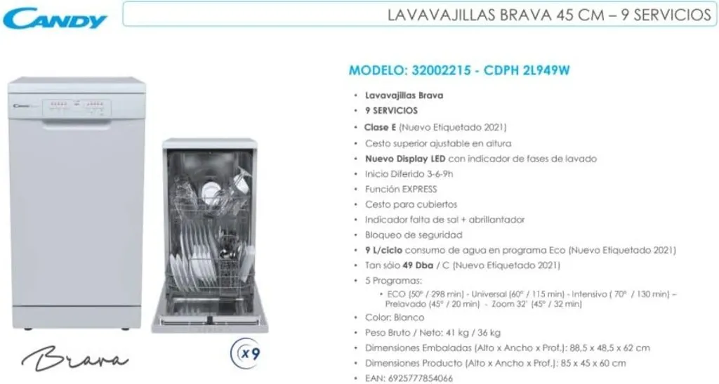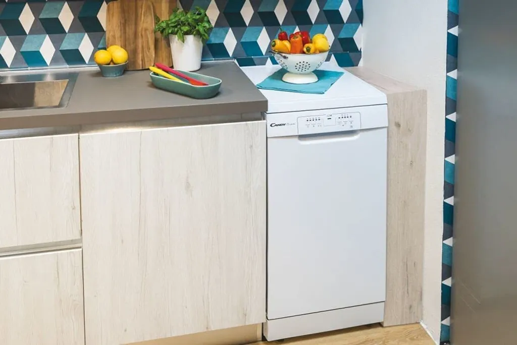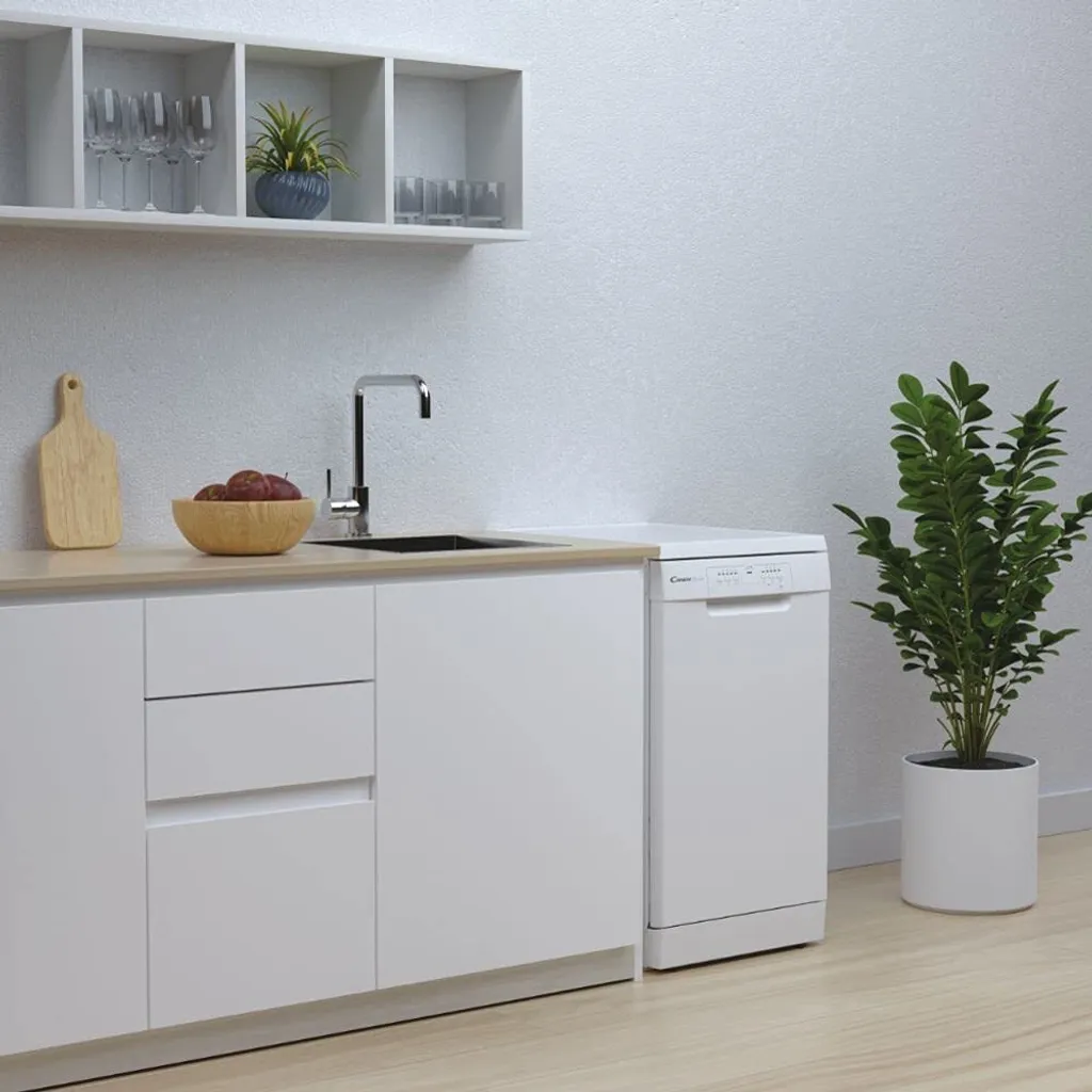 Candy CDPH 2L949W Freistehender Geschirrspüler, Weiß, 44,8 Cm Breite, 9 Maßgedecke, 4 Temperatureinstellungen, 5 Programme, , 9 Liter/Programm, 75 KWh/100 Zyklen, 49 DB, Startzeitvorwahl