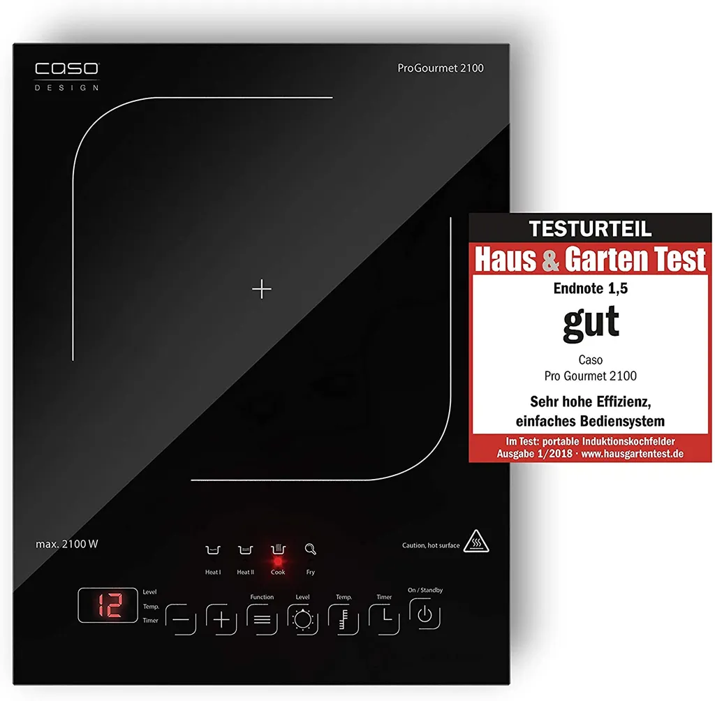 CASO ProGourmet 2100 Induktionskochplatte Mobil, Smart Control 2100 Watt, 4 Direkt- Und Warmhaltefunktion 60-240°C, Überhitzungsschutz, Glaskeramik
