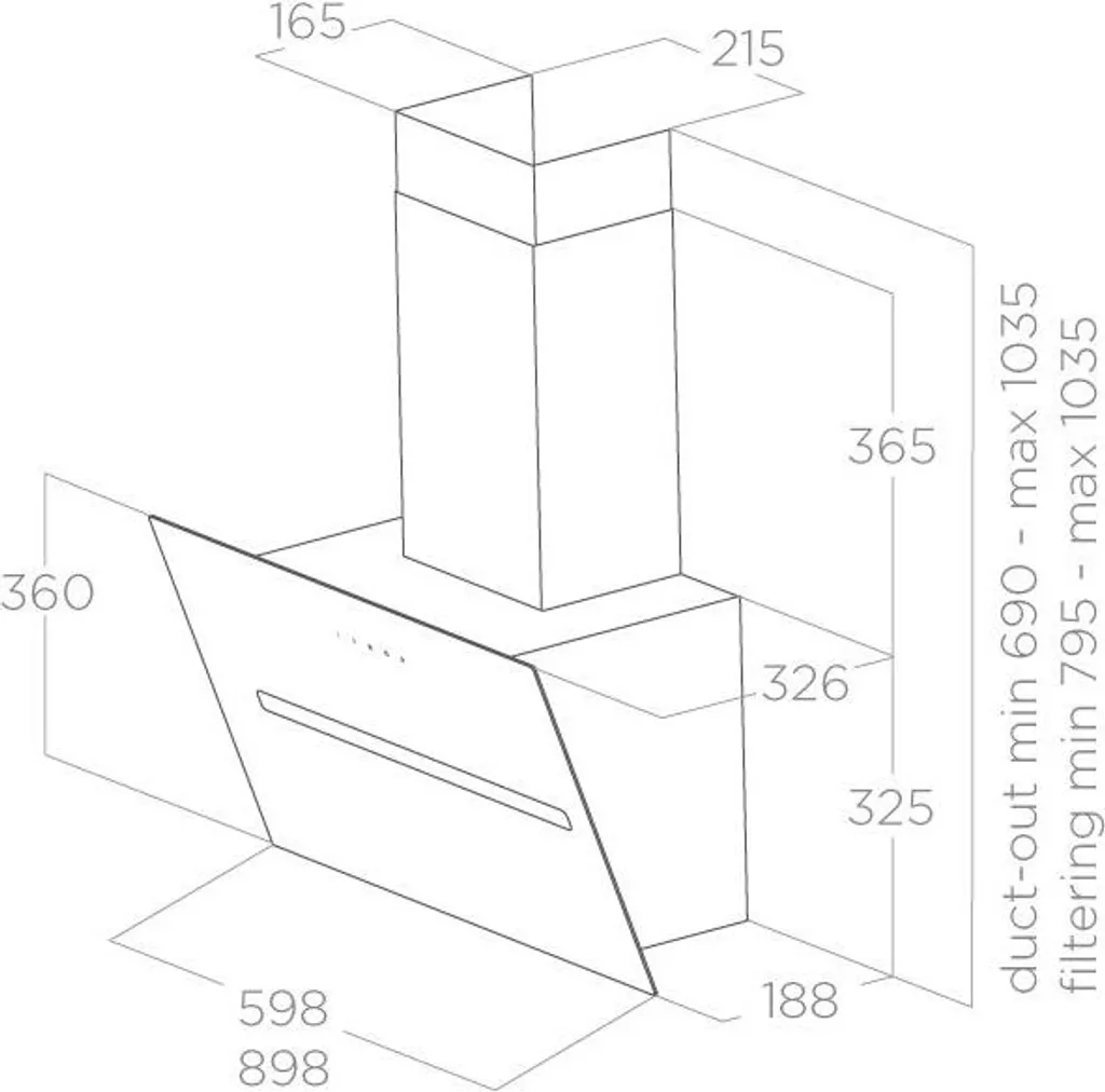 PKM KH-MSH-60BX Schwarz Dunstabzugshaube 60cm Schräghaube Randabsaugung