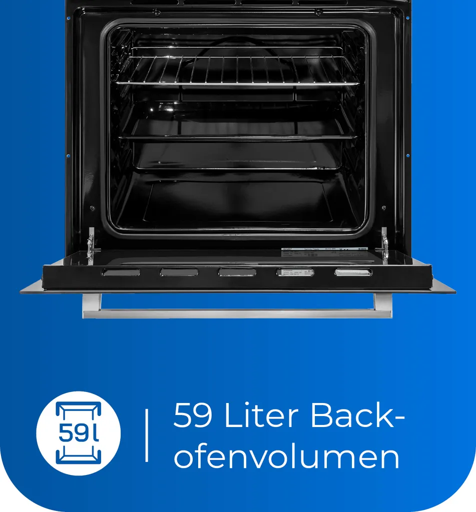 Exquisit EHE 156-2.1-Set Einbau-Herd Glaskeramikkochfeld | Ober-/Unterhitze | Grill | Inox