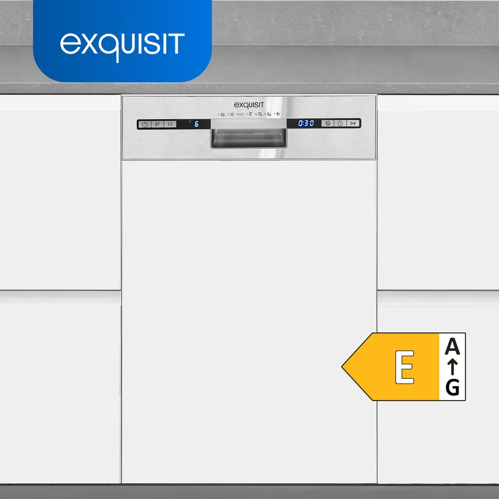 Exquisit Einbaugeschirrspüler EGSP2109-EB-030E Inox | Teilintegriert | 9 Gedecke | Inox