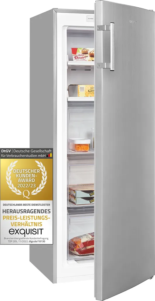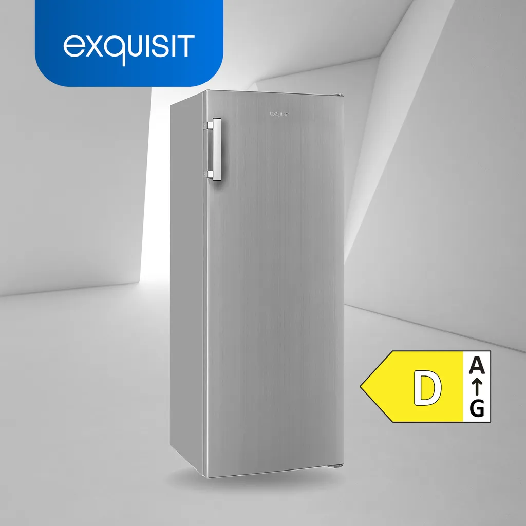 Exquisit Gefrierschrank GS231-NF-H-040D Inoxlook | 161 L Nutzinhalt | NoFrost | Umluftkühlung | LED-Anzeige | Wechselbarer Türanschlag | Edelstahloptik
