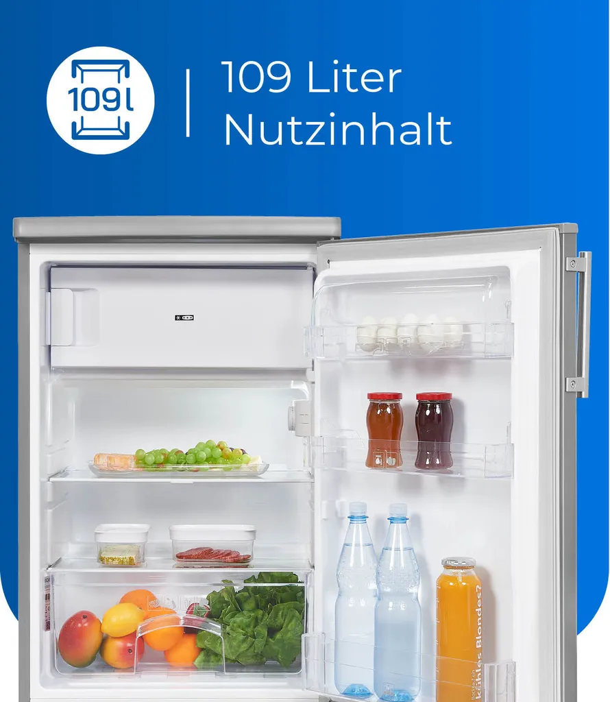 Exquisit Kühlschrank KS16-4-HE-040D Inoxlook | Standgerät | 109 L Volumen | Inoxlook