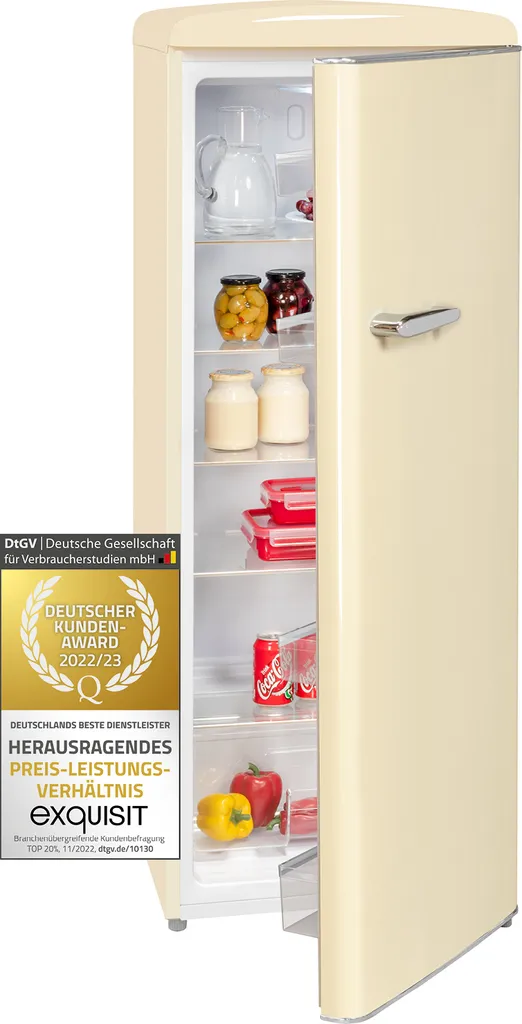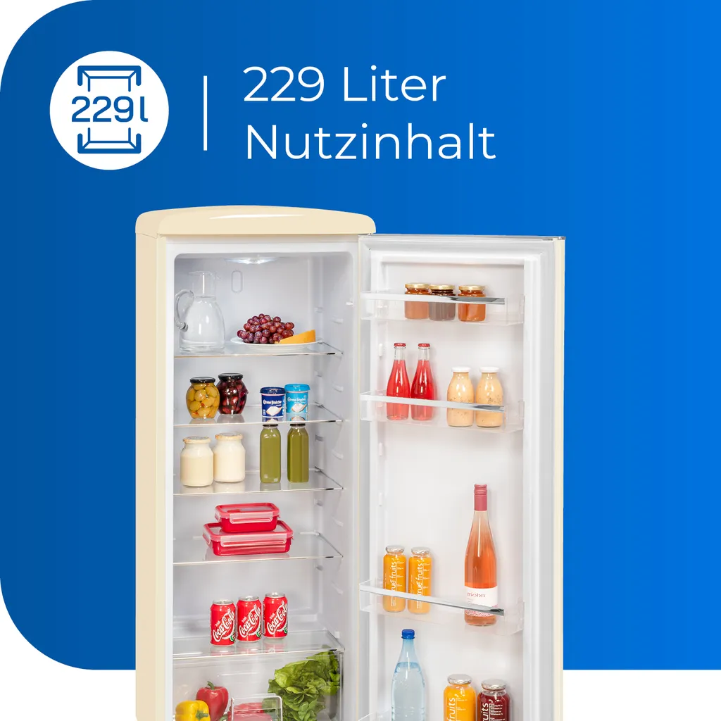 Exquisit Retrokühlschrank RKS325-V-H-160F Magnolienweiss | Standgerät | 229 L Volumen | Magnolienweiß