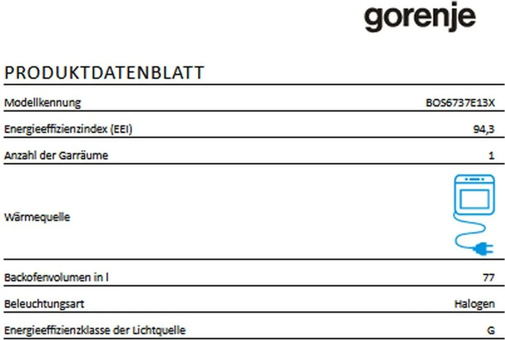 Gorenje BOS 6737 E13X Einbau-Backofen / 77 Liter/Heißluft/ExtraSteam/GentleClose & Open/EcoClean/Air Fry/PizzaMode/PerfectGrill/Teleskopauszüge/Inox-Look, Grau