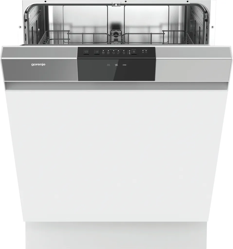 Gorenje GI 62040 X Einbau-Geschirrspüler 60cm Teilintegriert – Silberfarbene Bedienblende -13 Maßgedecke – Edelstahlbottich – Geschirrkorb – AquaStop – Selbstreinigende Filter