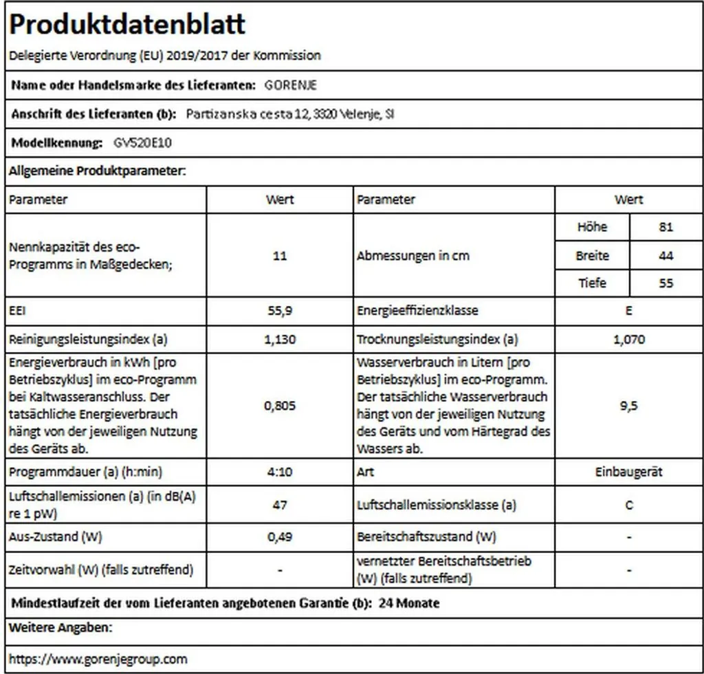 Gorenje GV 520 E 10 EB, Voll Integriert, Slimline (45 Cm), Schwarz, 11 Maßgedecke, 47 DB, Eco 45 ºC, Intensive 60 ºC, Schnell, Spülen, Standard 60 °C