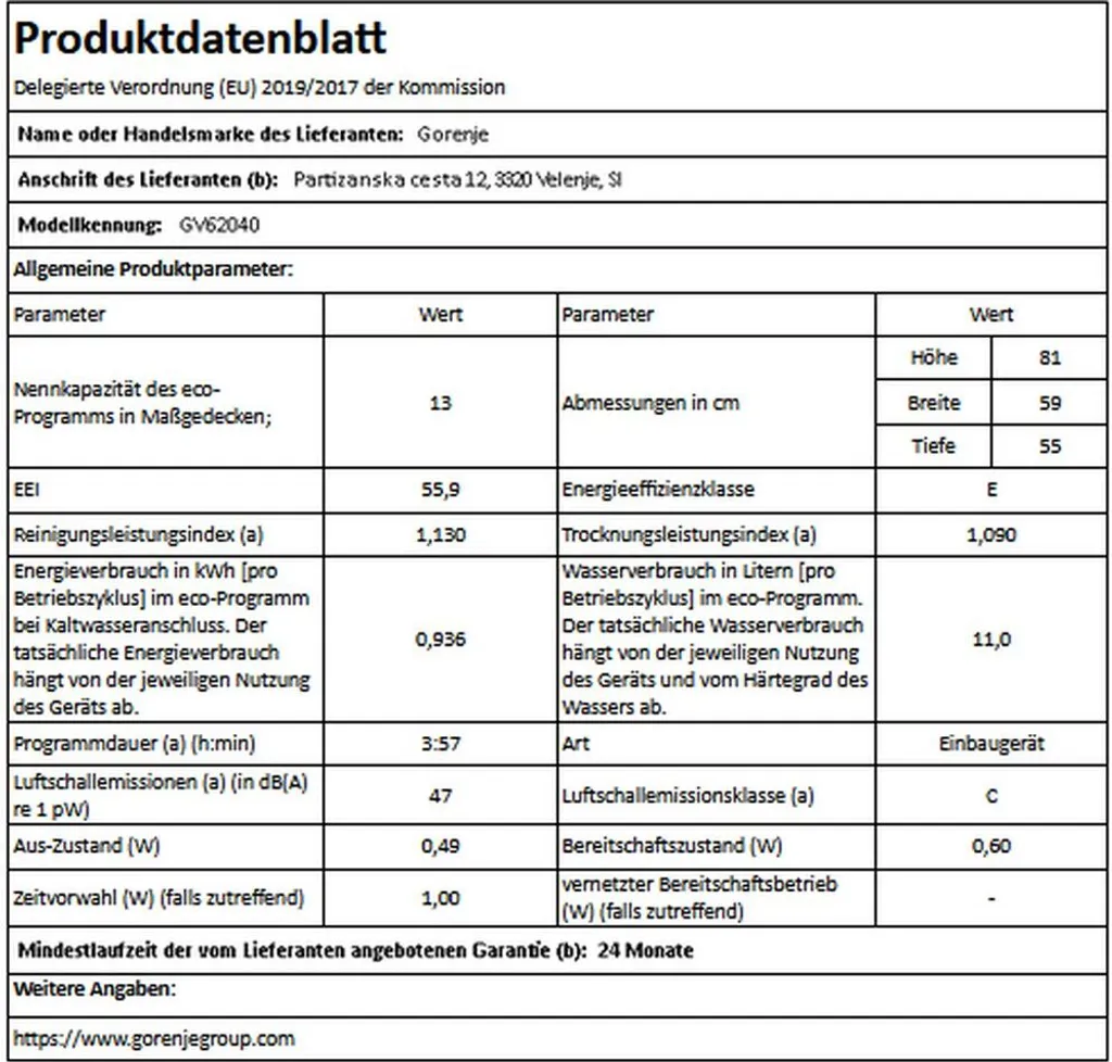 Gorenje GV62040 Vollintegrierbarer Geschirrspüler 60 Cm – 13 Maßgedecke – 5 Programme – AquaStop – Edelstahlbottich – Besteckkorb – Selbstreinigender Filter – Programmanzeige