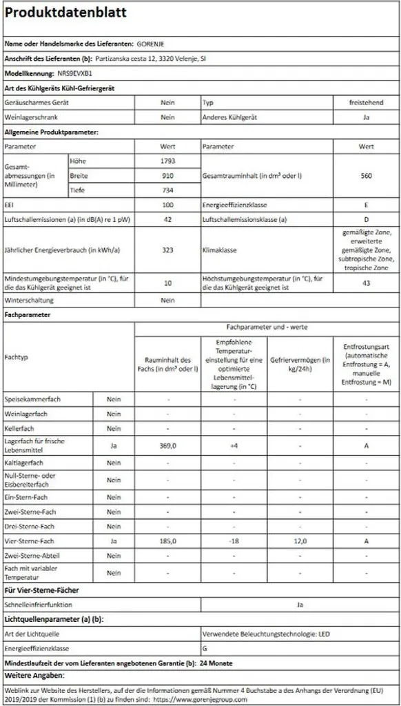 Gorenje – NRS9EVXB1 – Side By Side – Edelstahl – NoFrost – Festwasseranschluß
