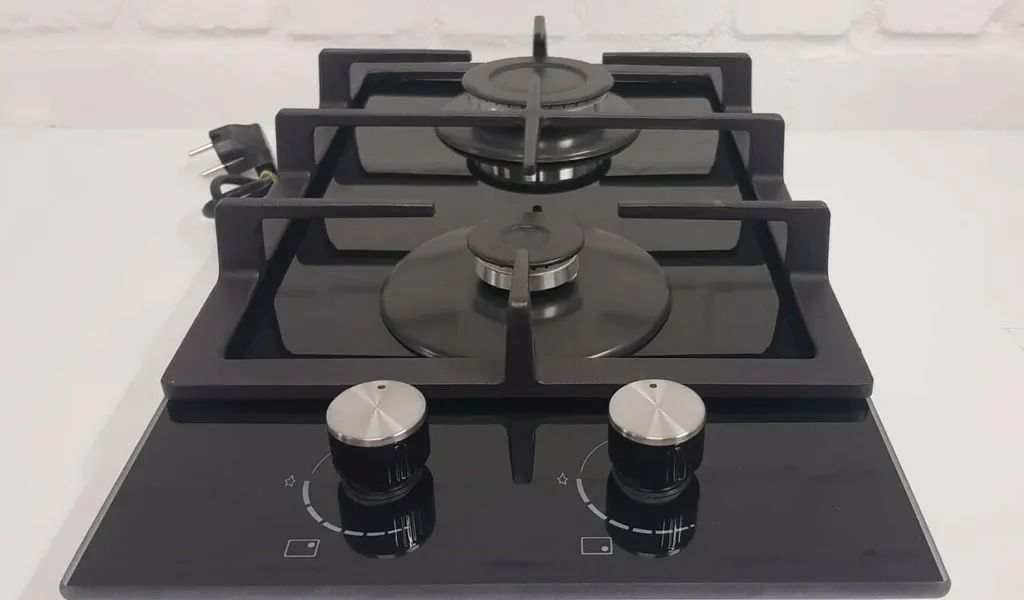 Hirogas Gaskochfeld 2 Brenner Glaskeramik Schwarz Einbau 30cm Erdgas LPG