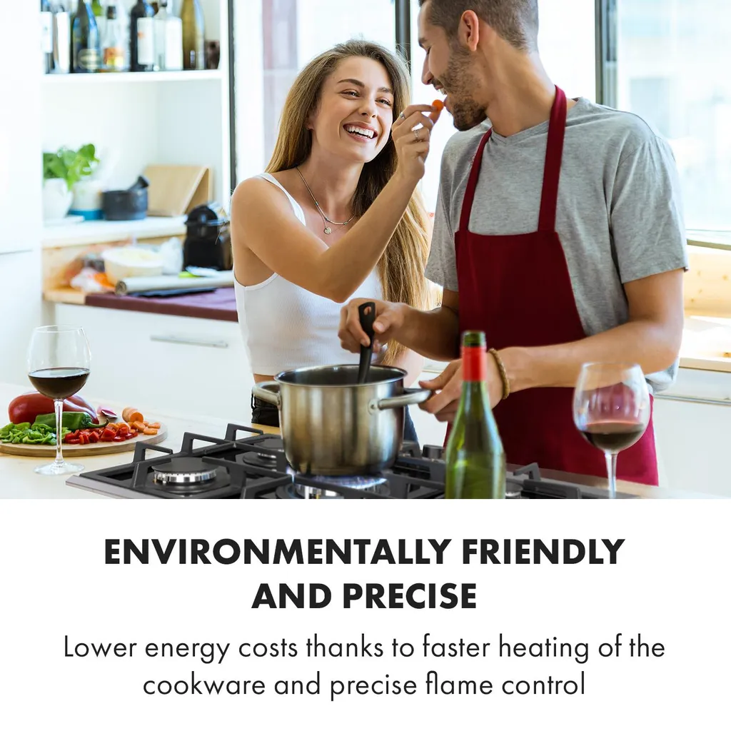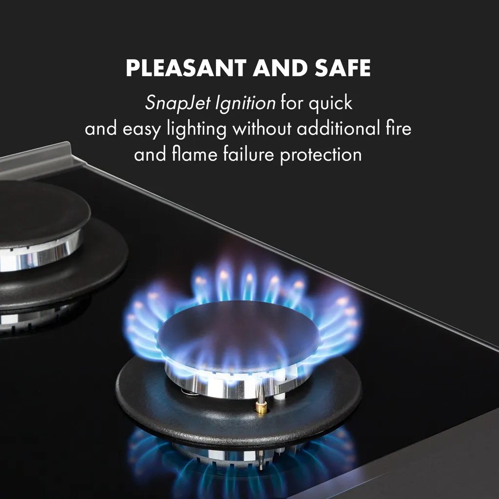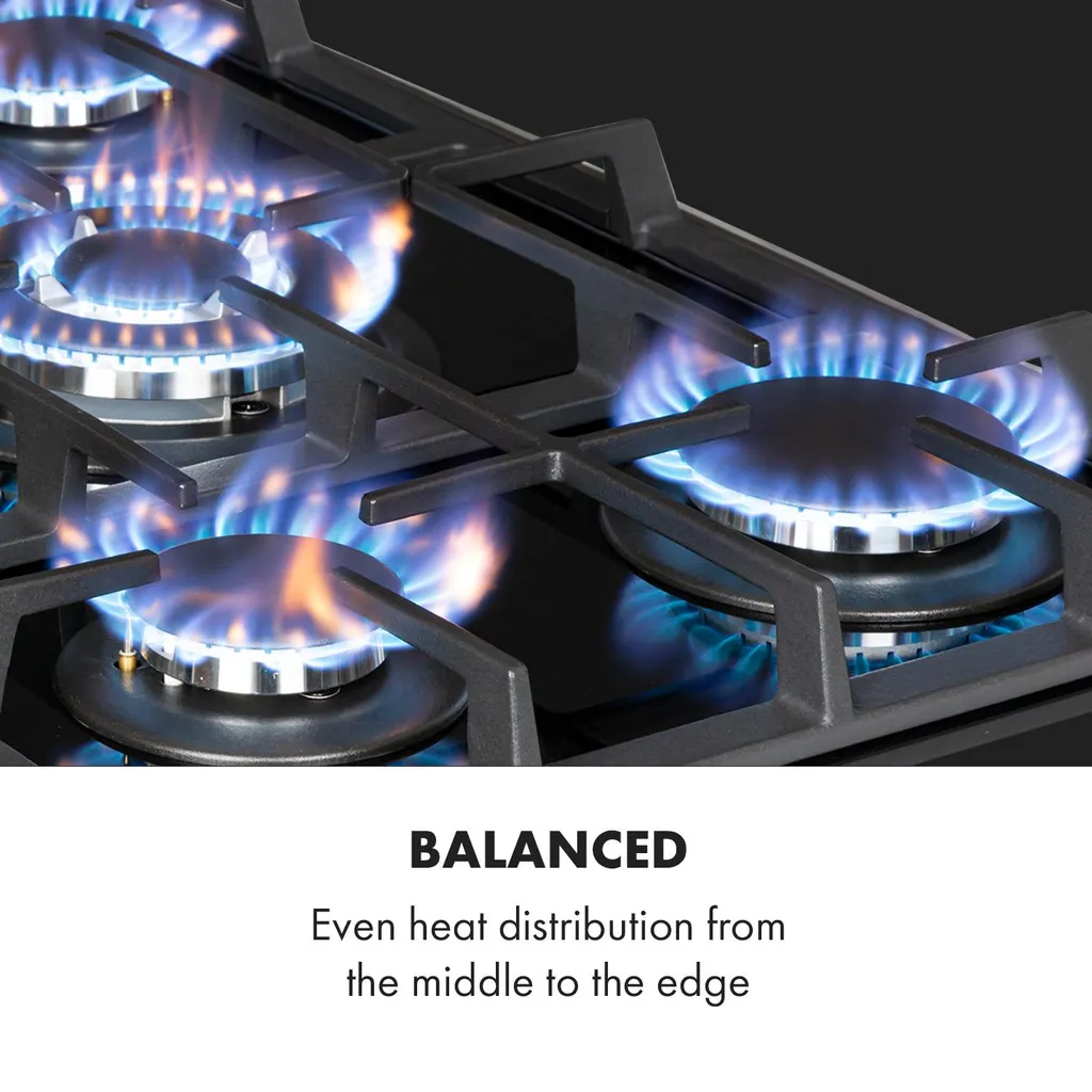 Klarstein Alchemist 5 Zonen Gaskochfeld , 5-flammig , Autark , 68 Cm , Einbau , Aluminium-Brenner , Stark-Brenner , Erdgas/Butangas , Edelstahl , Automatische Abschaltung , Topfträger Aus Gusseisen , Glaskeramik , Inkl. Schlauch Und Druckminderer , Schwarz