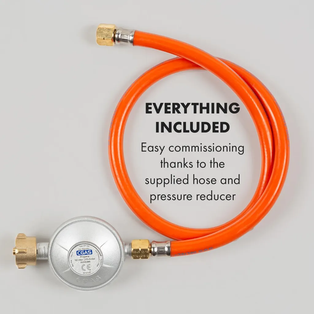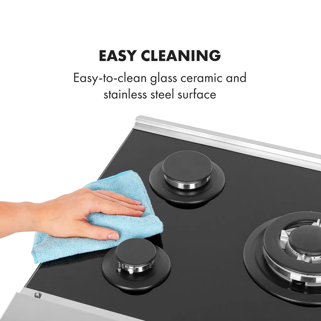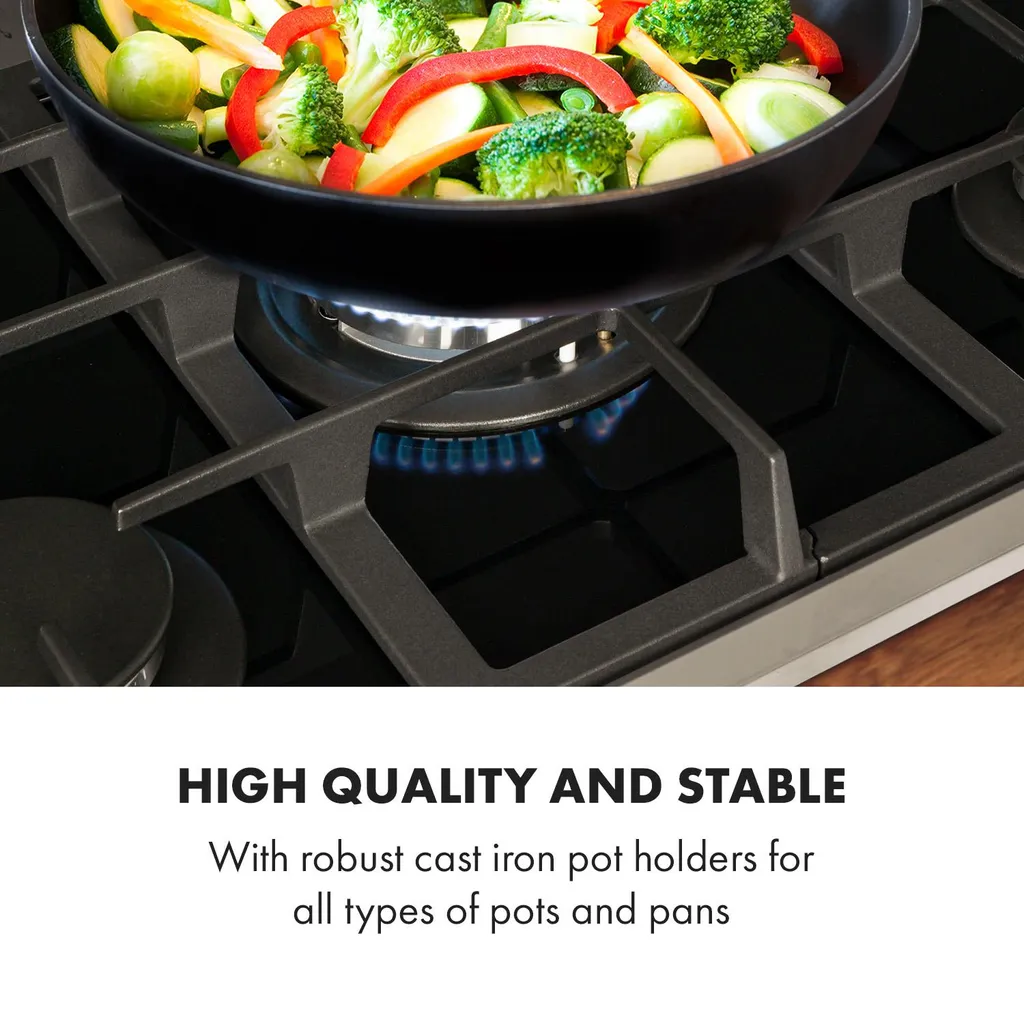 Klarstein Alchemist 5 Zonen Gaskochfeld , 5-flammig , Autark , 68 Cm , Einbau , Aluminium-Brenner , Stark-Brenner , Erdgas/Butangas , Edelstahl , Automatische Abschaltung , Topfträger Aus Gusseisen , Glaskeramik , Inkl. Schlauch Und Druckminderer , Schwarz