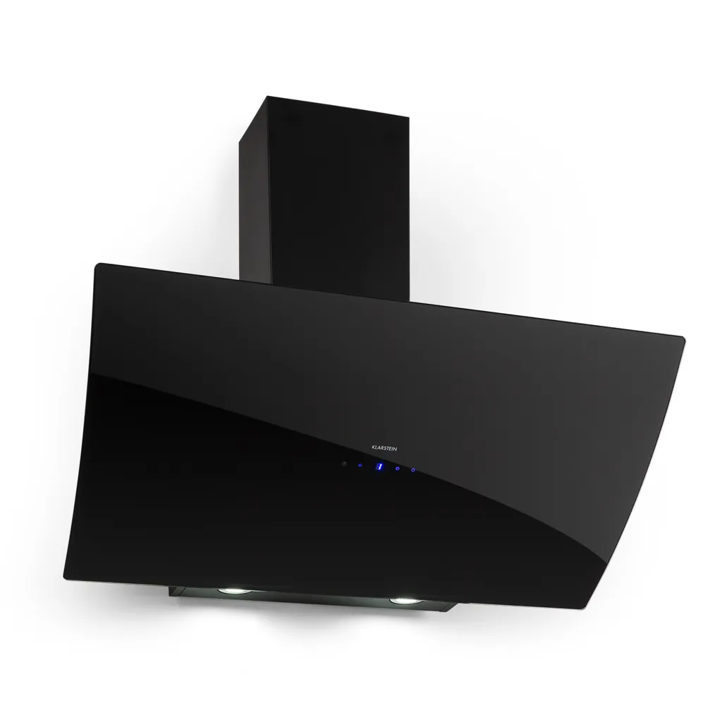 Klarstein Annabelle 90 Dunstabzugshaube – Kopffreihaube, Wandabzugshaube, Abluft/Umluft, 650 M³/h Abluftleistung, 230 Watt, LED-Kochflächenbeleuchtung, Edelstahl, Touch-Armatur, Schwarz