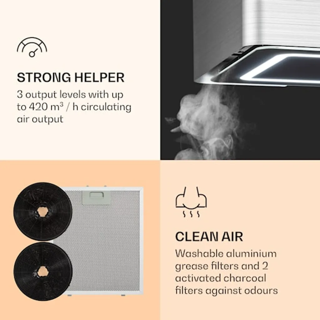 Klarstein Futurelight Smart Inselabzugshaube , Umluft 420m³/h , LED Beleuchtung , 3 Leistungsstufen ,Steuerbar Via WiFi Und Klarstein App Experience , Edelstahl