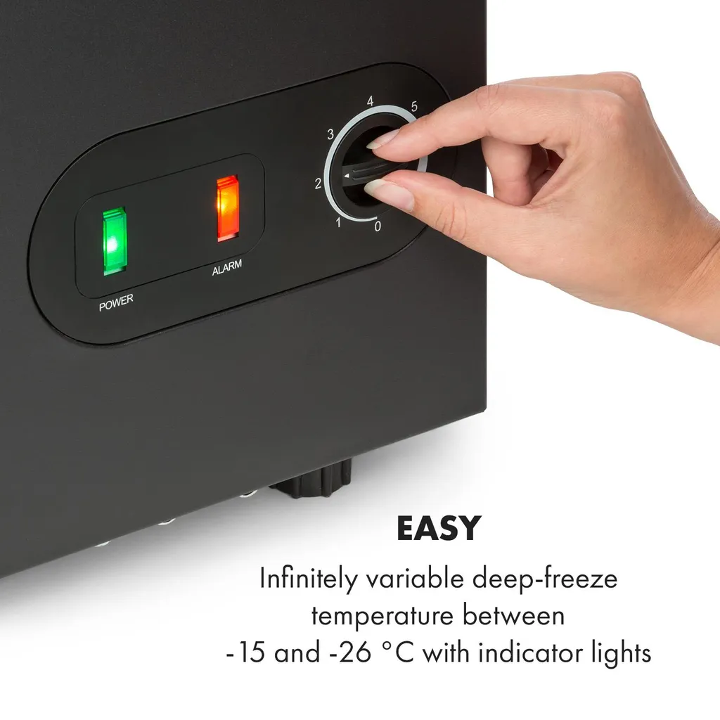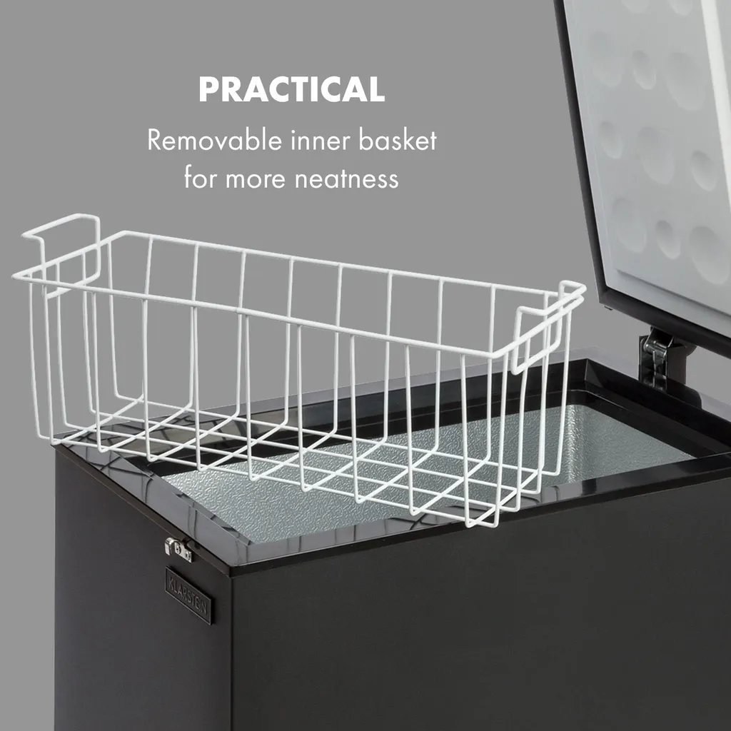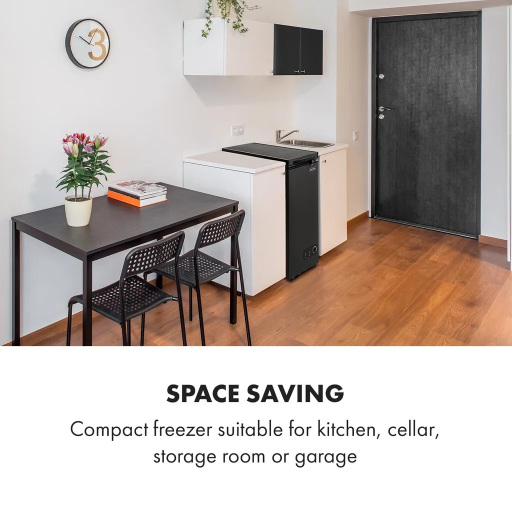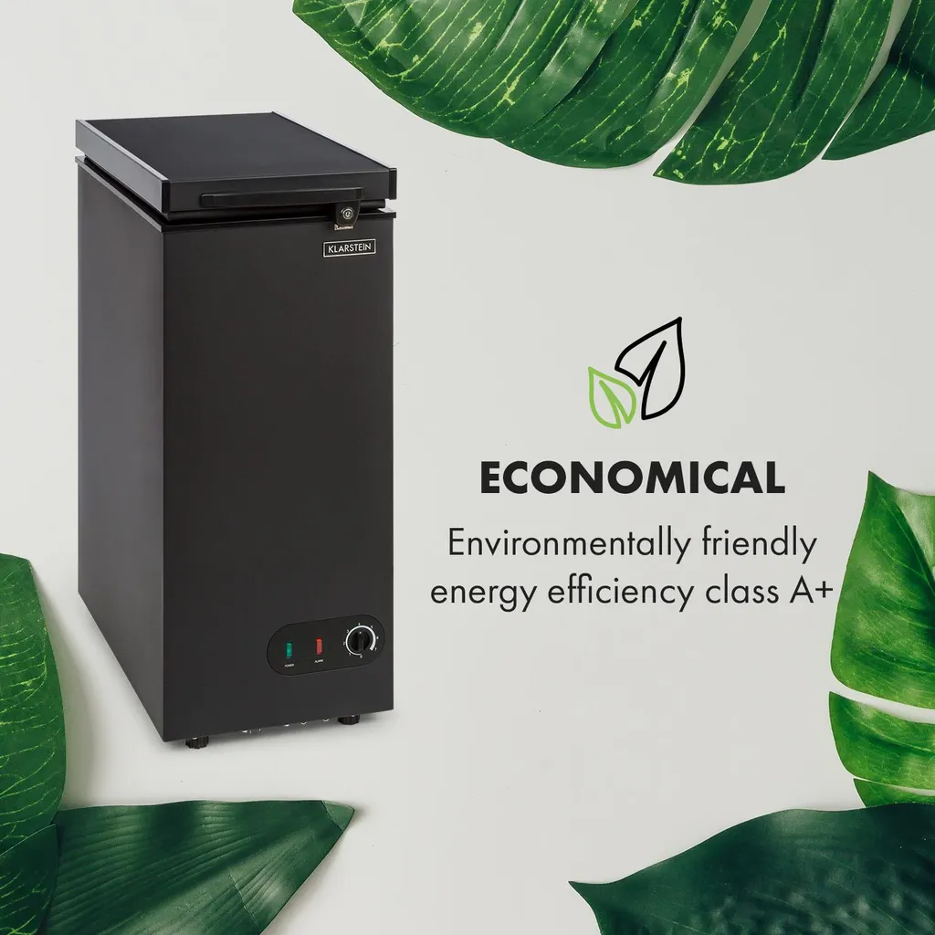 Klarstein Gefrierschrank Gefriertruhe – Tiefkühltruhe Gefrierbox – Temperaturregler – Bodenrollen – Freistehend – 50 Liter – Mattschwarz Tiefkühlschrank Freistehend Gefriertruhe Gefrierschrank Groß Kühltruhe Gefriergeräte