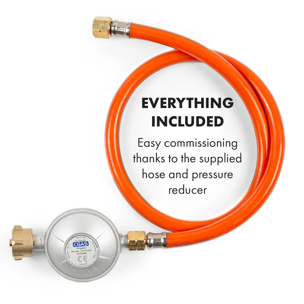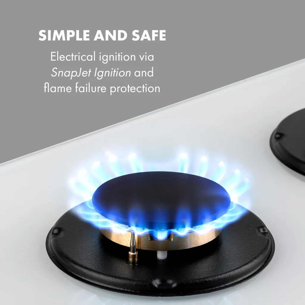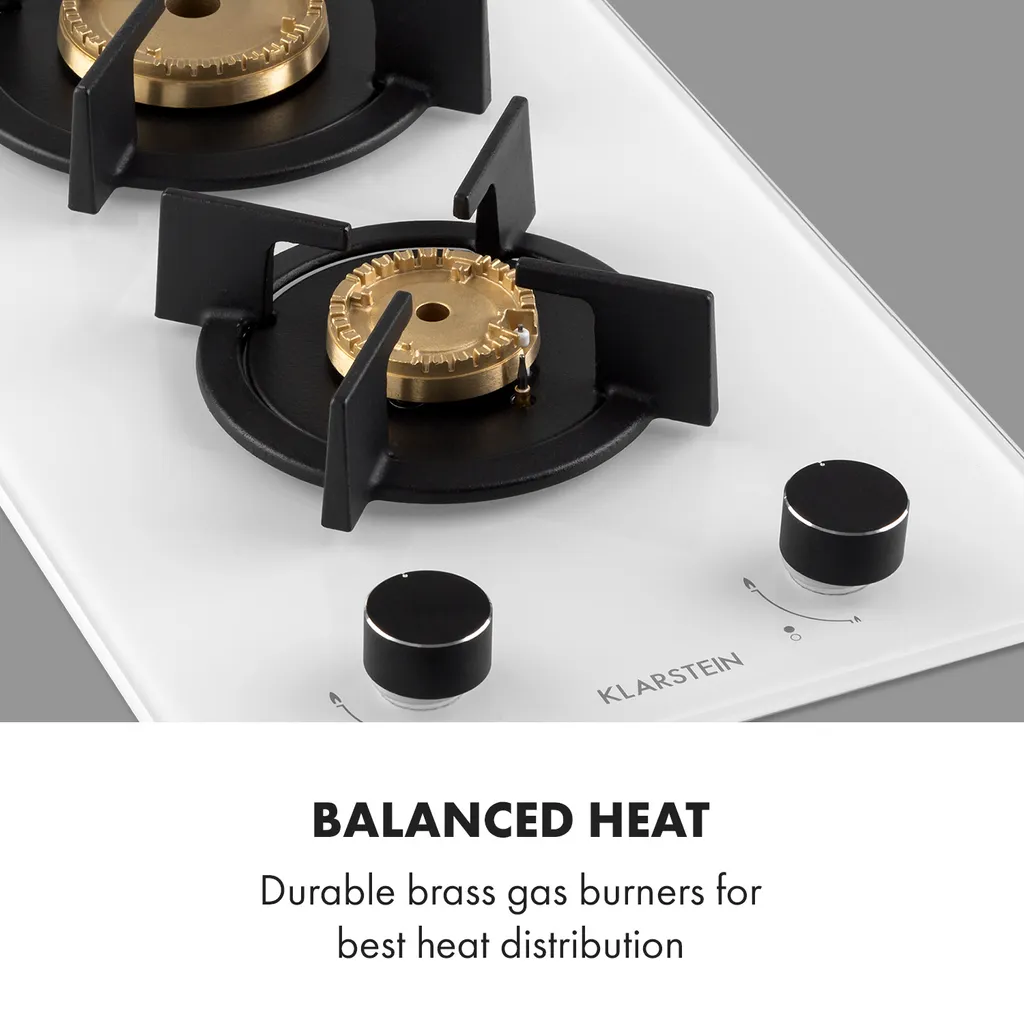 Klarstein Goldflame Domino Gaskochfeld , 2-flammig , Autark , 30 Cm , Einbau , Messing-Brenner , Erdgas/Propangas , Sicherheitsventile , Automatische Abschaltung , Topfträger Aus Gusseisen , Inkl. Schlauch Und Druckminderer , Glaskeramik Ø 8 Mm , Weiß
