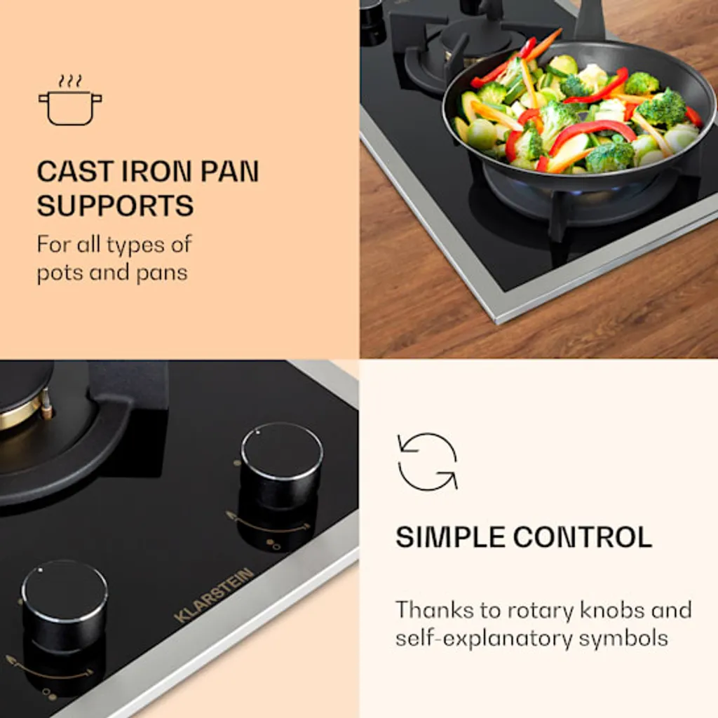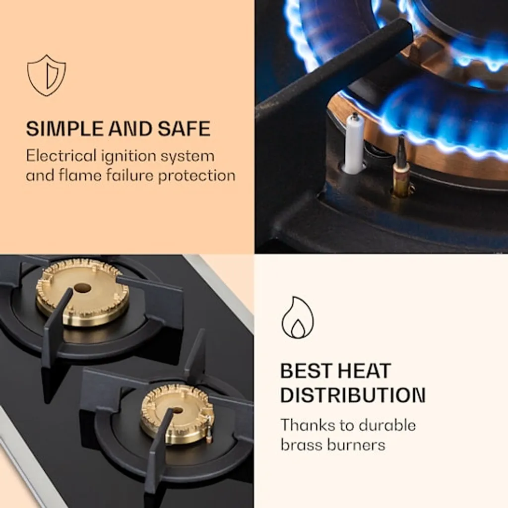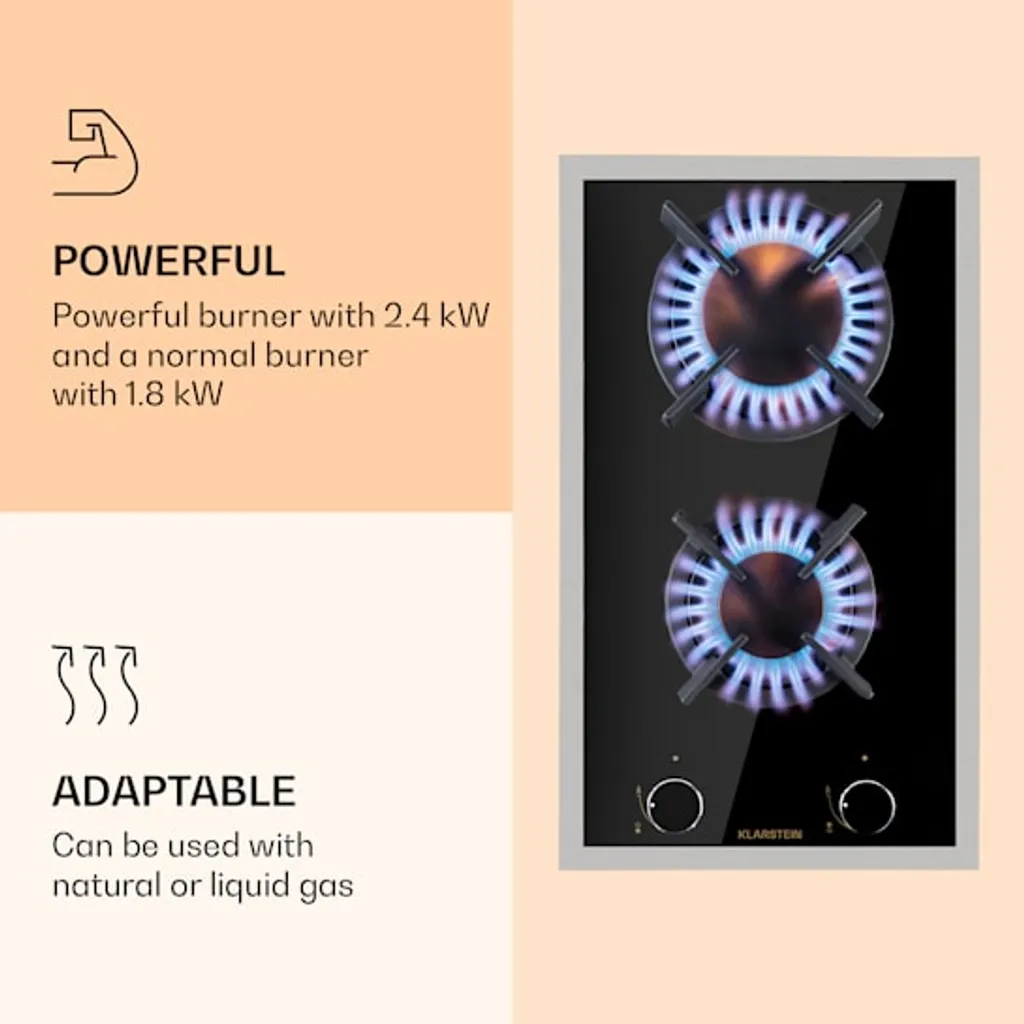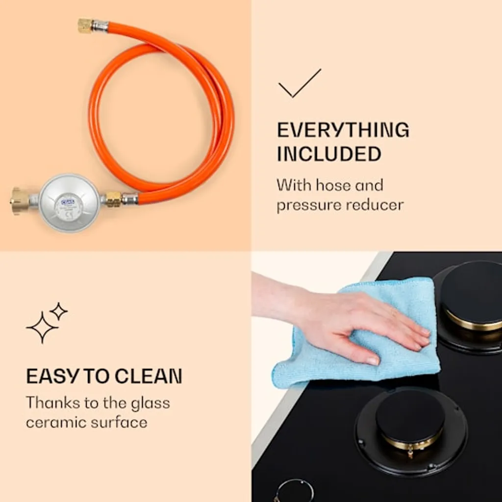 Klarstein Goldflame Domino Prime Gaskochfeld , 2-flammig Messing-Brenner , 4,2 KW, Glaskeramik , Inklusive Schlauch Und Druckminderer