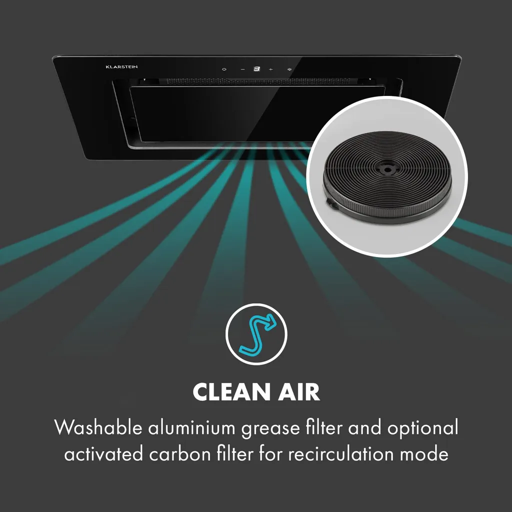 Klarstein Hektor Eco Lüfterbaustein , 52 Cm , Max. Abluftleistung 566 M³/h , EEK: B , 3 Stufen , Nachlüftungstimer , LEDs: 2 X 2 W , Touch-Panel , Dunstabzugshaube , Einbau-Haube , Unterseite Aus Sicherheitsglas , Schwarz