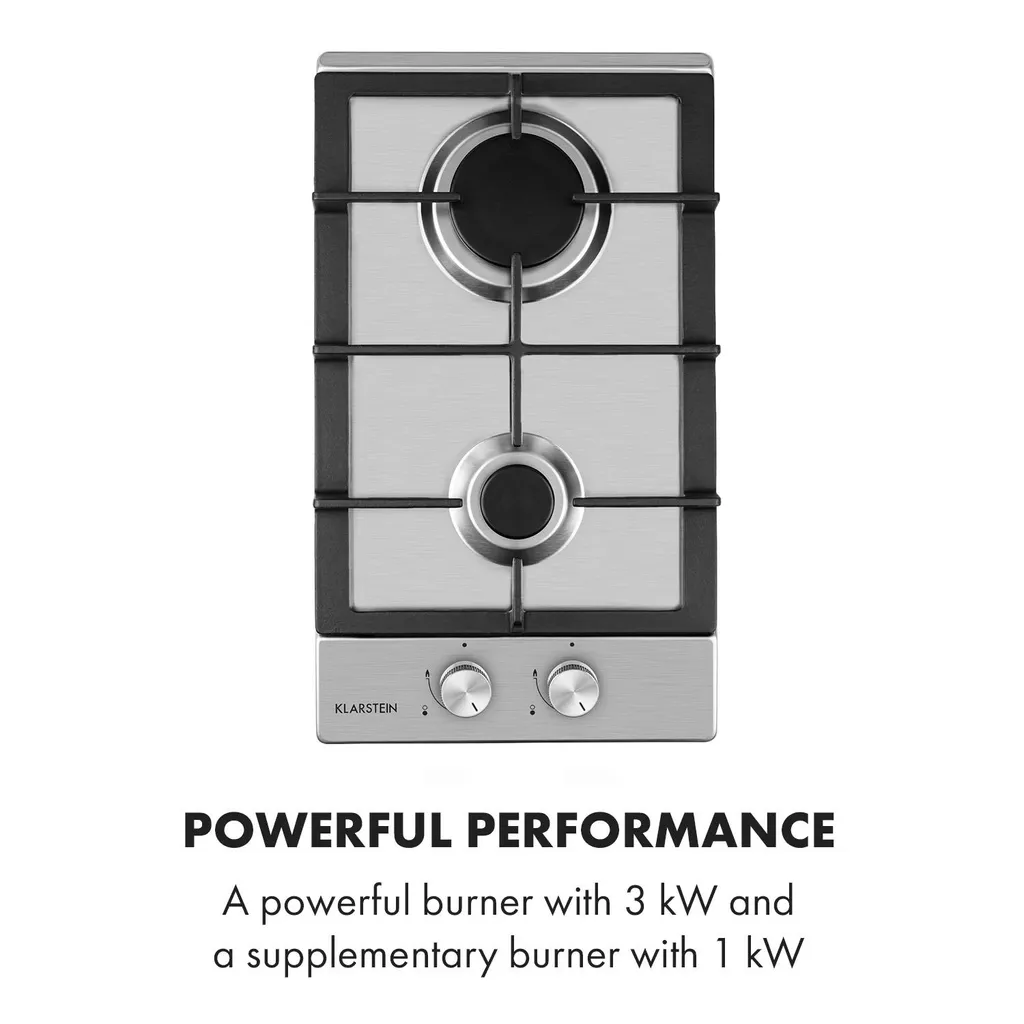 Klarstein Ignito Domino Gaskochfeld , 2-flammig , Autark , 30 Cm , Einbau , Sabaf-Brenner , Erdgas/Propangas , Sicherheitsventile , Automatische Abschaltung , Topfträger Aus Gusseisen , Edelstahl , Silber