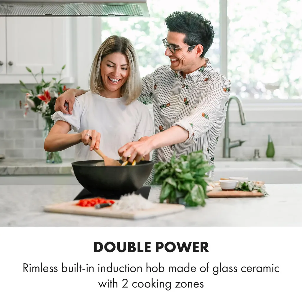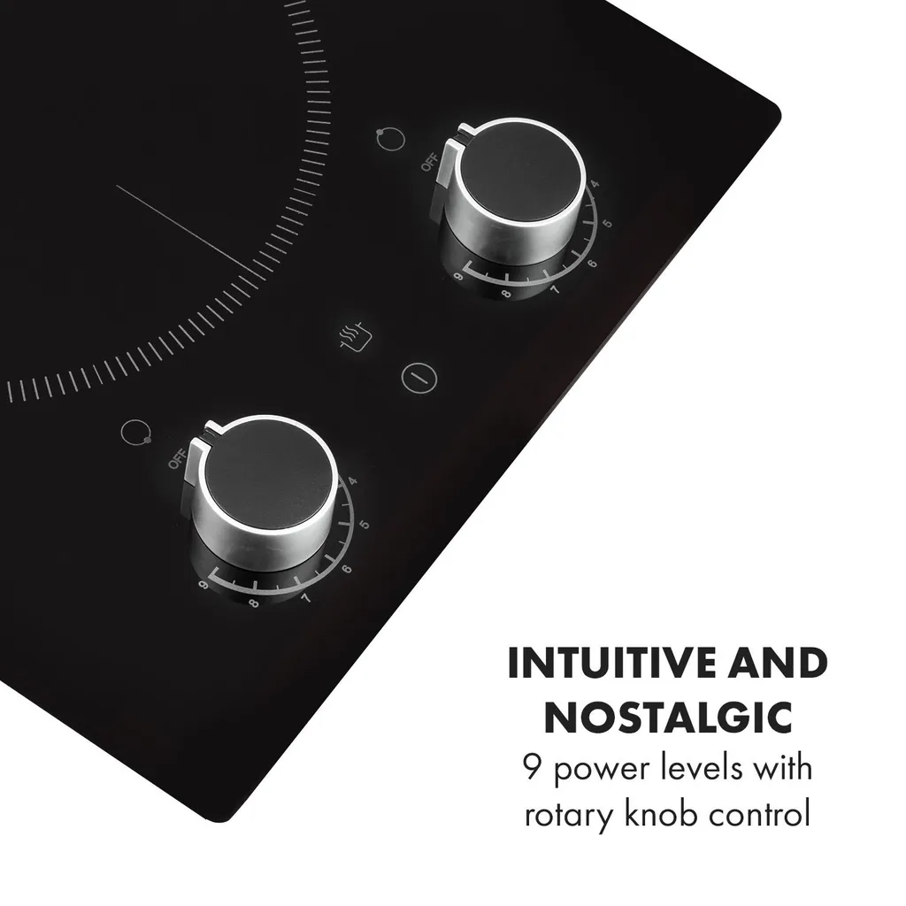 Klarstein Kochheld Doppel-Induktionskochfeld , Einbau-Kochfeld , 2900 Watt , Dreh-Regler , 120 Cm Kabellänge , 3-poliger-Anschluss , 9 Stufen , Abschalt-Automatik , Glas , Schwarz