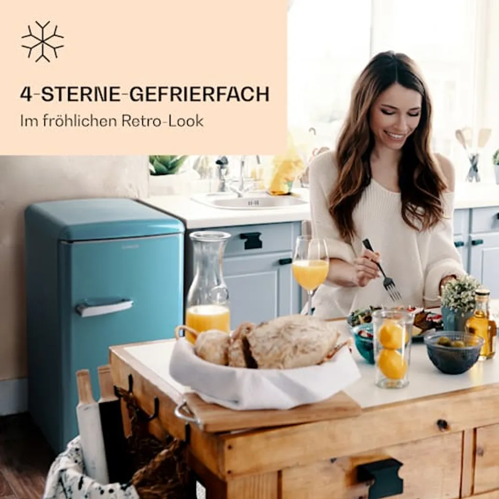 Klarstein Laika 60L Gefrierschrank , 60 Liter , 4-Sterne-Gefrierfach , 3 Schubladen , Temperatur: -18 Bis 0 °C , 5-stufiger Thermostat , 41 DB , Retro-Look