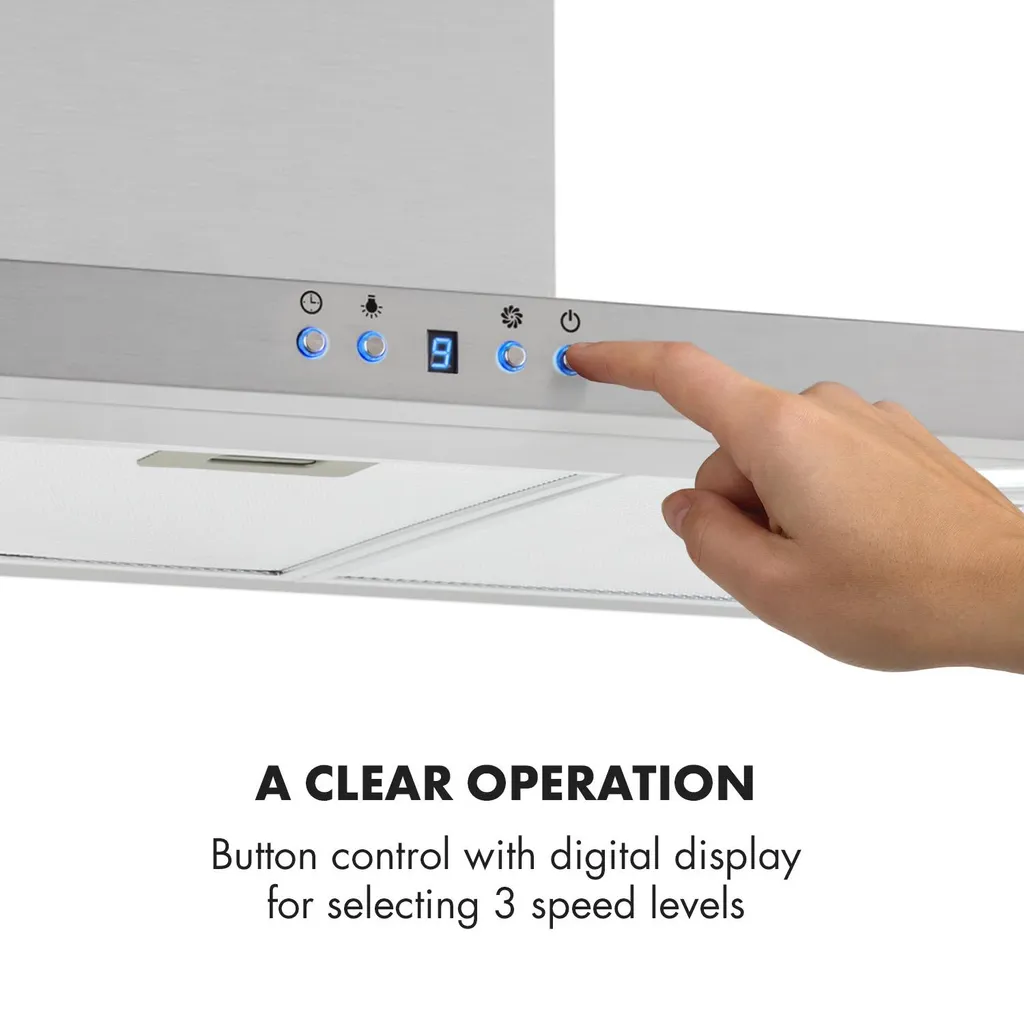Klarstein Limelight Dunstabzugshaube 90 Cm , Wandhaube , Energieeffizienzklasse A++ , Abluftbetrieb , 600 M³/h , 3 Geschwindigkeitsstufen , Digitalanzeige , LED-Kochfeldbeleuchtung , Umrüstbar Auf Umluftbetrieb , Edelstahl Gebürstet
