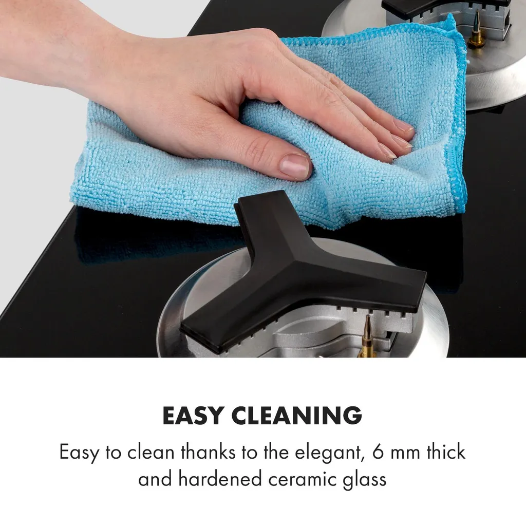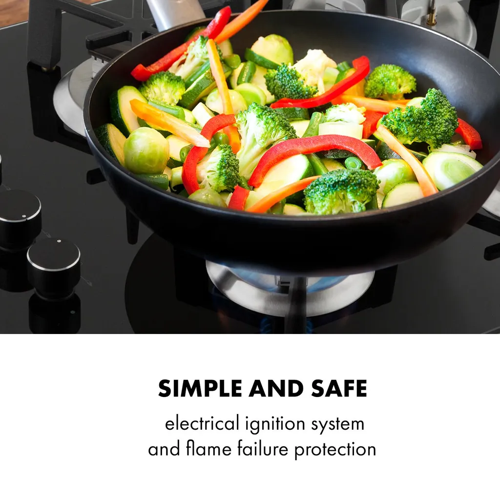 Klarstein Trifecta 4 Gaskochfeld ,4-flammig ,autark ,60 Cm ,Einbau ,Triangle-Brenner ,Erdgas/Propangas ,Sicherheitsventile ,automatische Abschaltung ,Gusseisen ,Glaskeramik Ø 6 Mm ,schwarz
