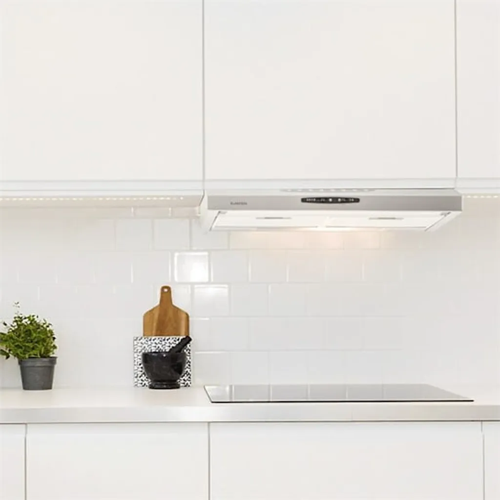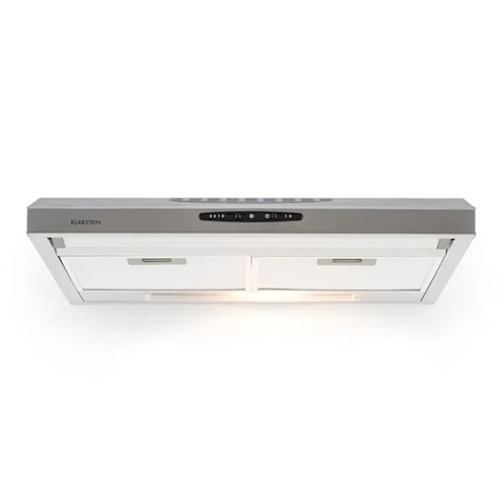 Klarstein UW60SF – Dunstabzugshaube , Abzugshaube , Unterbauhaube , Wandhaube , Energieeffizienzklasse C , 60cm , Abluft- / Umluft , 205 M³/h Max. Abluftleistung , 71 DB , Silber