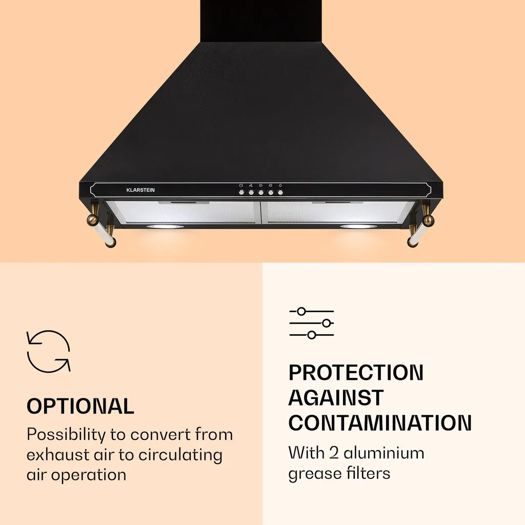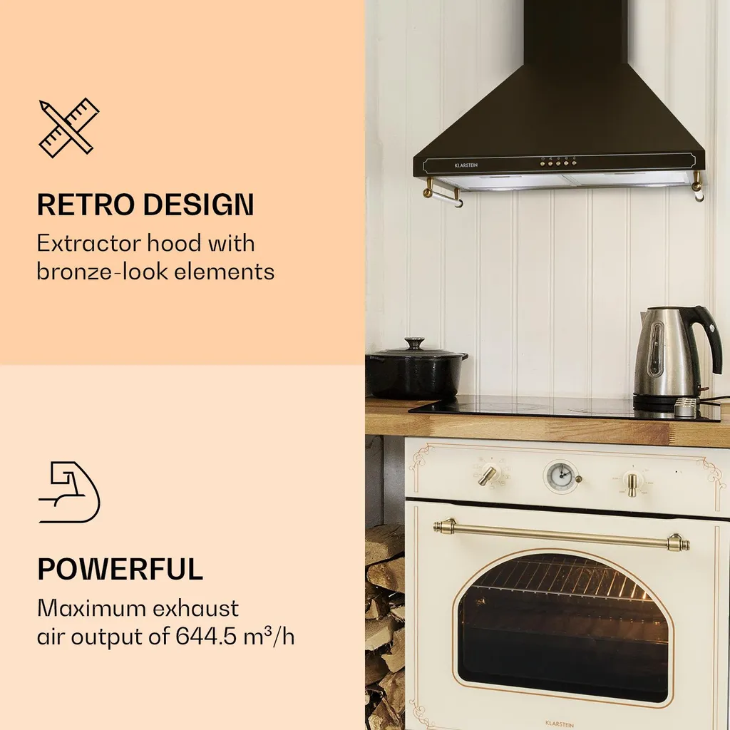 Klarstein Victoria Dunstabzugshaube 60cm , 644,5 M³/h Luftdurchsatz , 2 Stromsparende LED-Lampen , Retro-Design