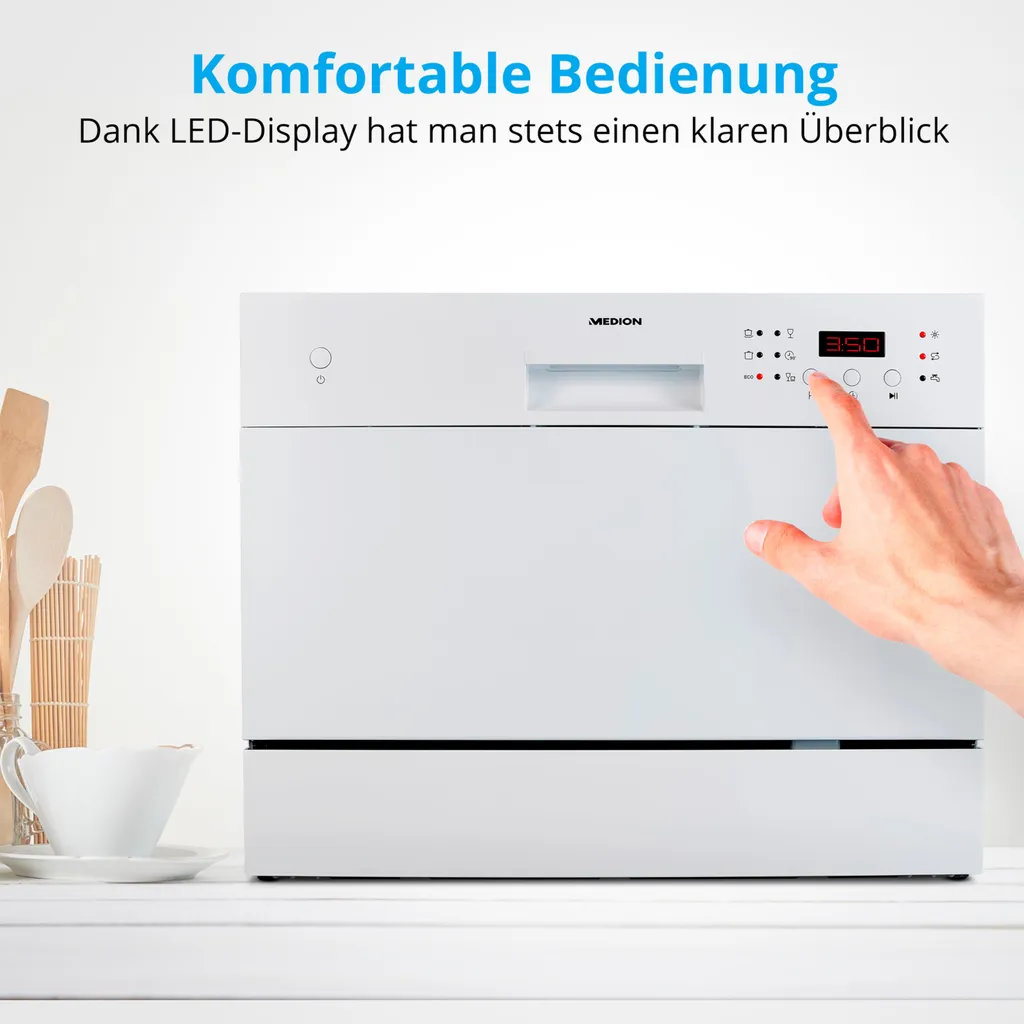 MEDION Tischgeschirrspüler (6 Gedecke Fassungsvermögen, 6 Reinigungsprogramme, ECO Programm, LED Anzeige, 51 DB, MD37210)