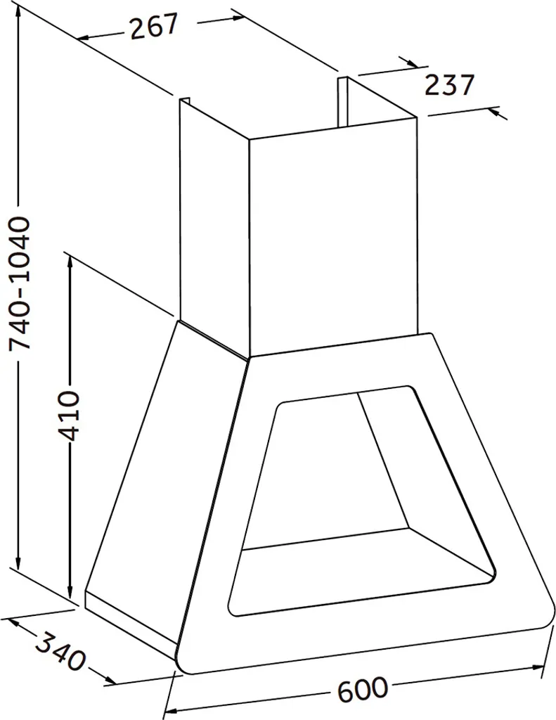 Silverline SLW 610 S Slim Deluxe Randabsaug.60cm, 800m3/h Freiblasend Edelstahl, Wandhaube,