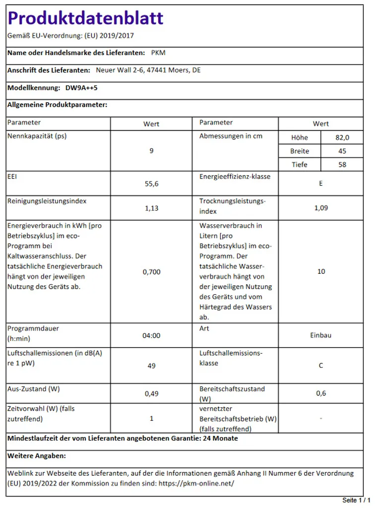 PKM Geschirrspüler Spülmaschine Spüler Freistehend DW9 5 Schmal 9 Gedecke 45cm