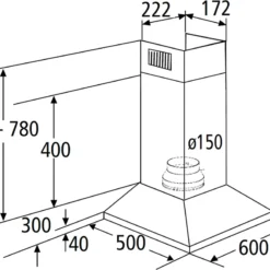 KHU-602 Dunstabzugshaube Abzugshaube Breite 60cm Unterbauhaube Flach