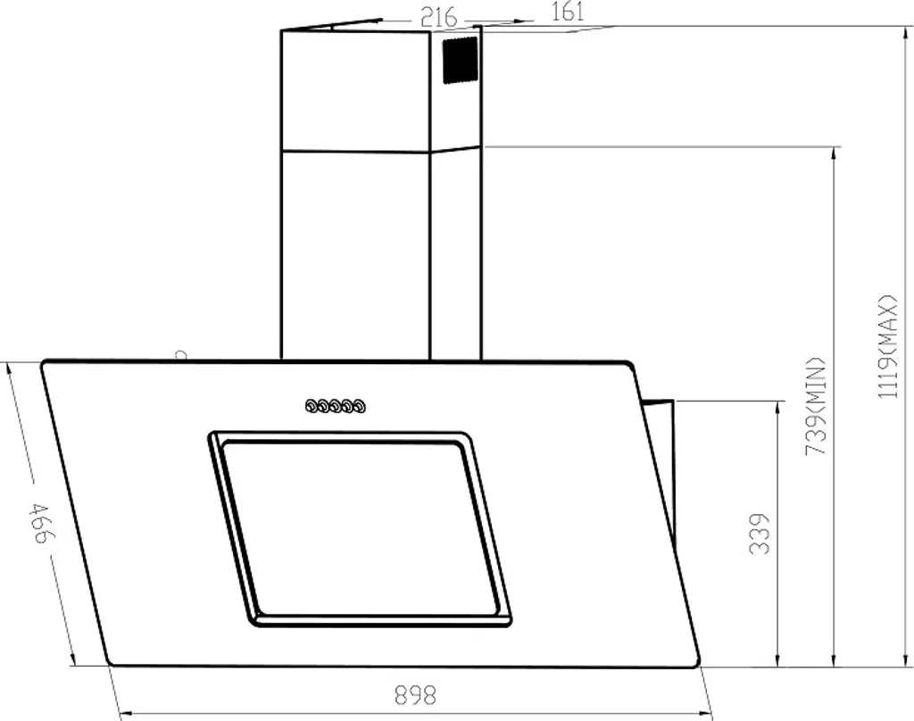 Respekta Dunstabzugshaube Schräghaube Wandhaube Esse Kopffrei 90 Cm Schwarz LED