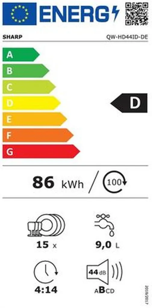 Sharp – QW-HD44ID-DE – Vollintegrierbarer Geschirrspüler – 60 Cm
