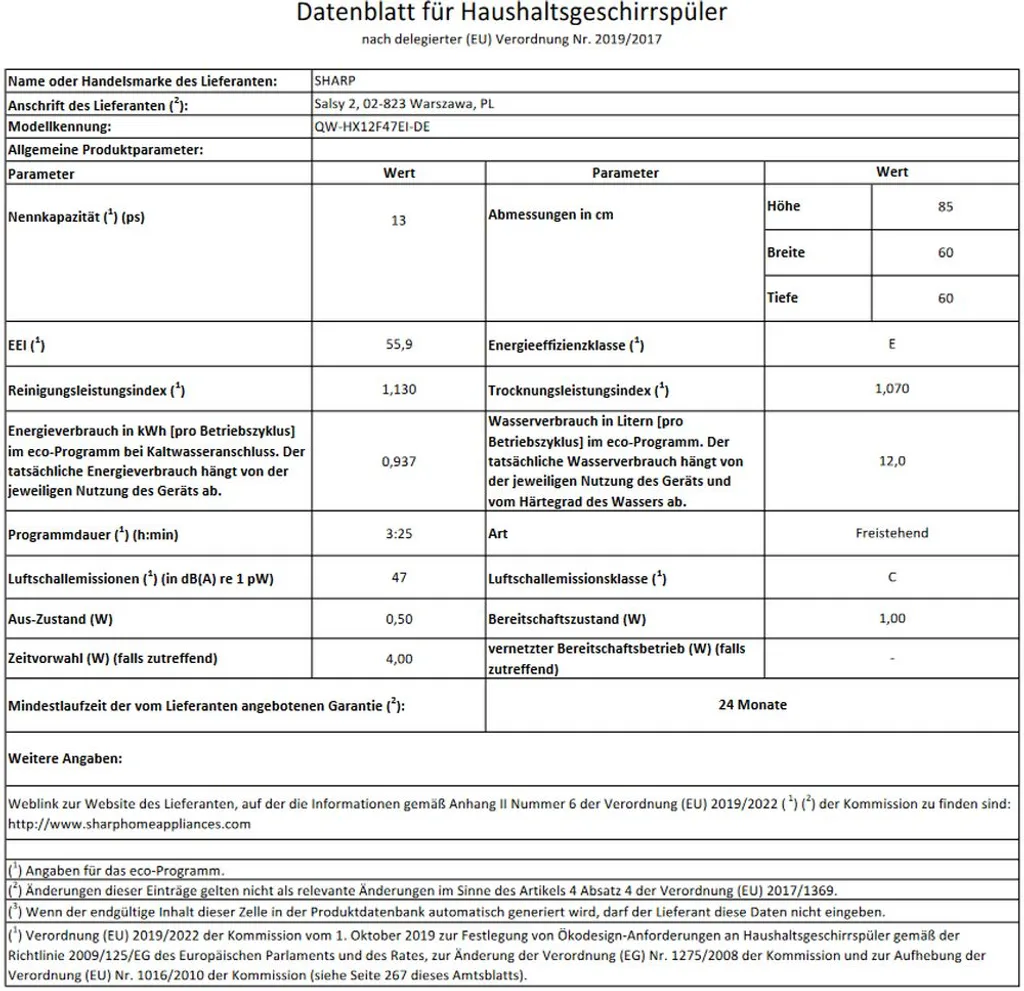 Be the first to review “Sharp – QW-HX12F47EI-DE – Stand-Geschirrspüler – Silber – 60 Cm” Antwort abbrechen