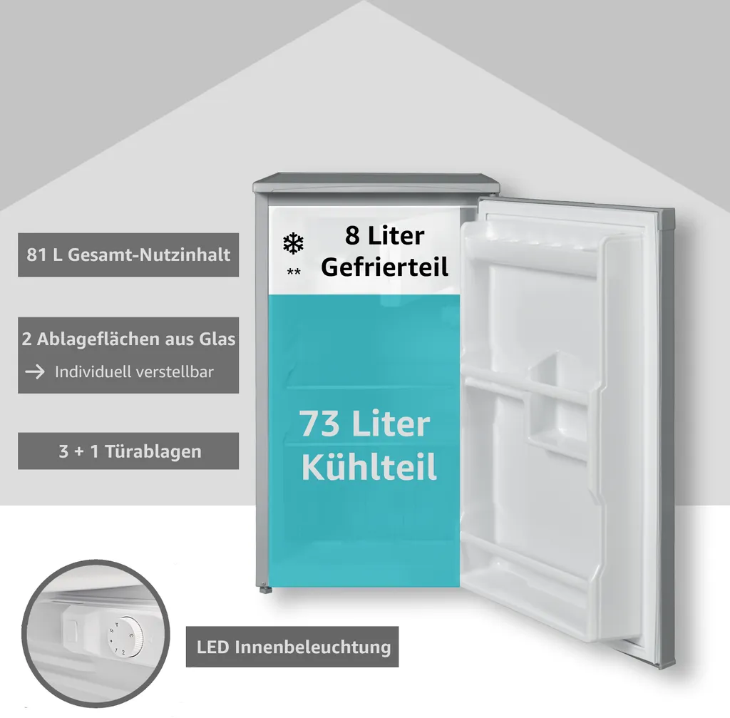 Telefunken CF-32-151-S Kühlschrank Mit Gefrierfach Silber / 81 L / 73 L Kühlteil / 8 Liter Gefrierteil / Türanschlag Wechselbar / Höhenverstellbare Füße
