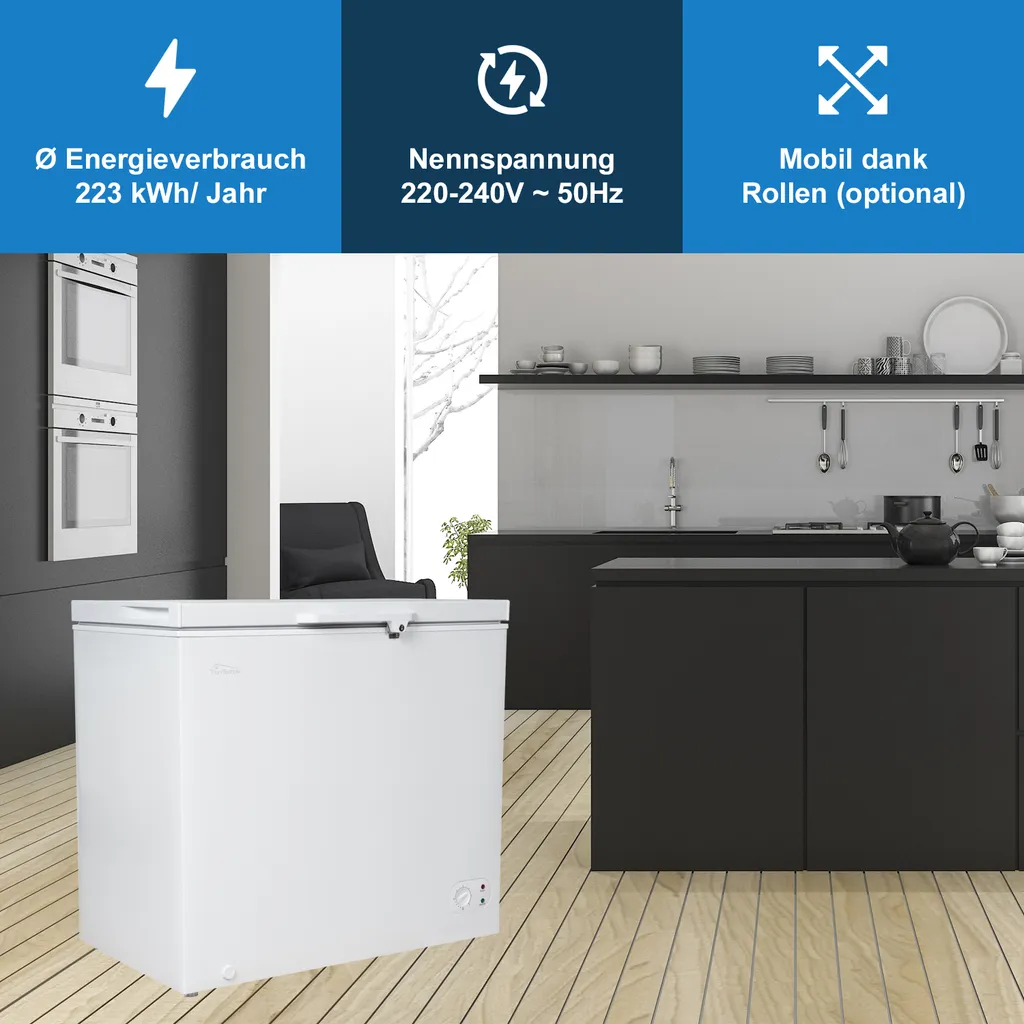 TroniTechnik Gefriertruhe Kühltruhe Kühlfach 210L Abschließbar Mit Korb Und Schloss