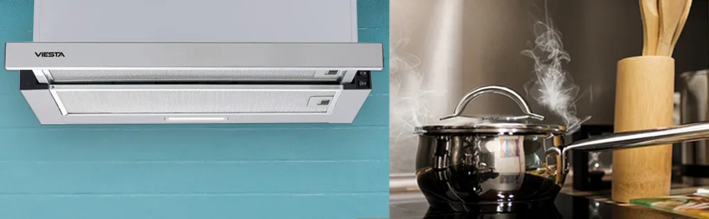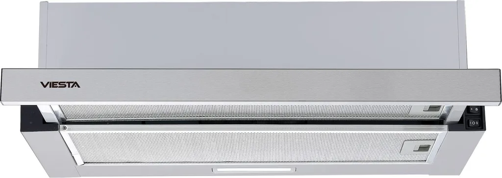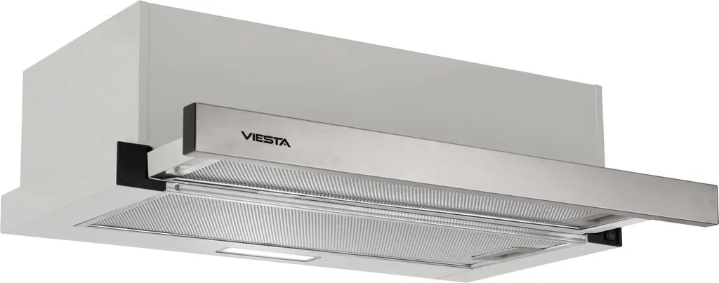 VIESTA VDE6065SR Dunstabzugshaube 60cm – Edelstahl Einbau Flachschirmhaube Mit Fettfiltern – Ausziehbar – Abluft- & Umluftfunktion – Dunstabzug Mit Silberner Edelstahlblende – Energieklasse B